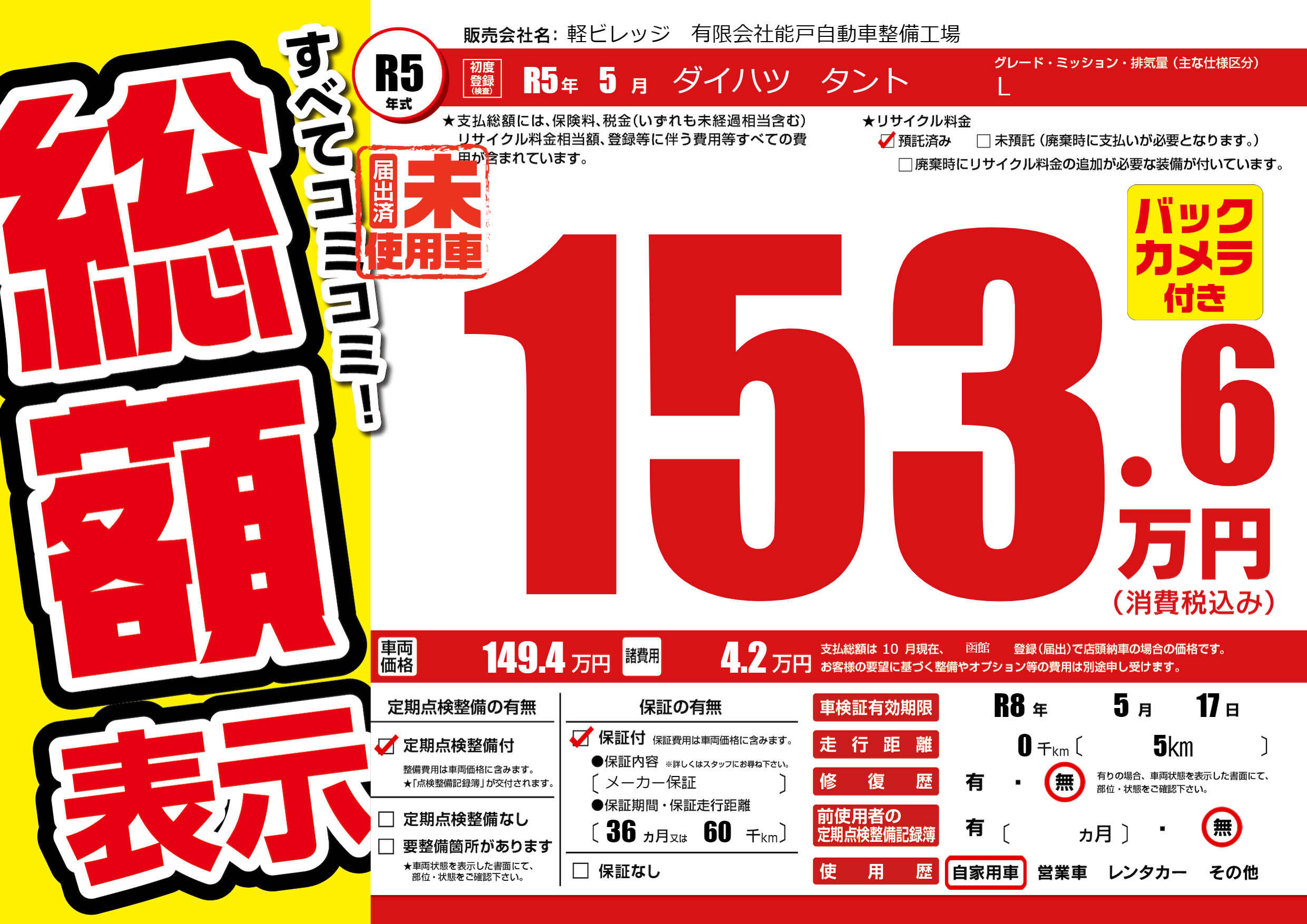 | 走行キロ | - | 初年度登録 | R5年5月 |