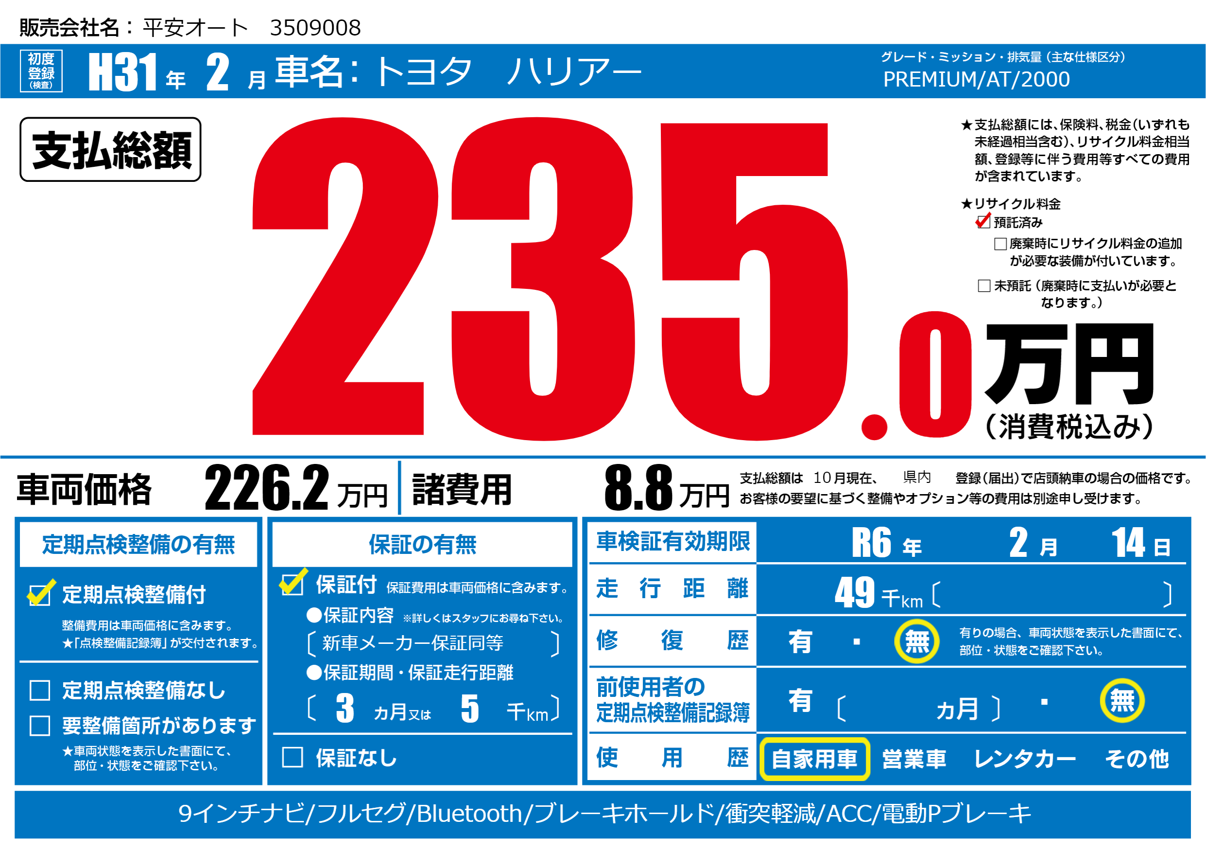 | 車検制限 | R6年 2月 14日 | ||