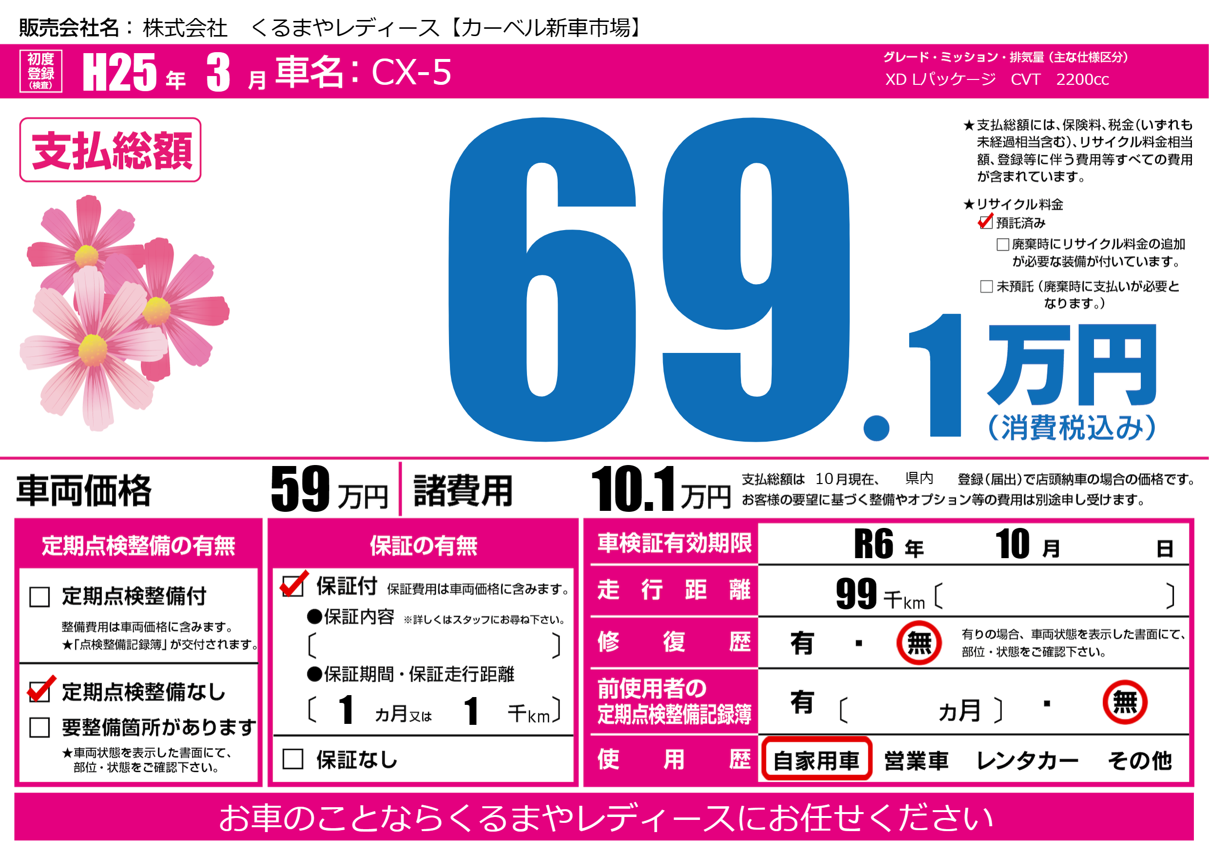 | 車検制限 | R6年 10月 - 日 | ||