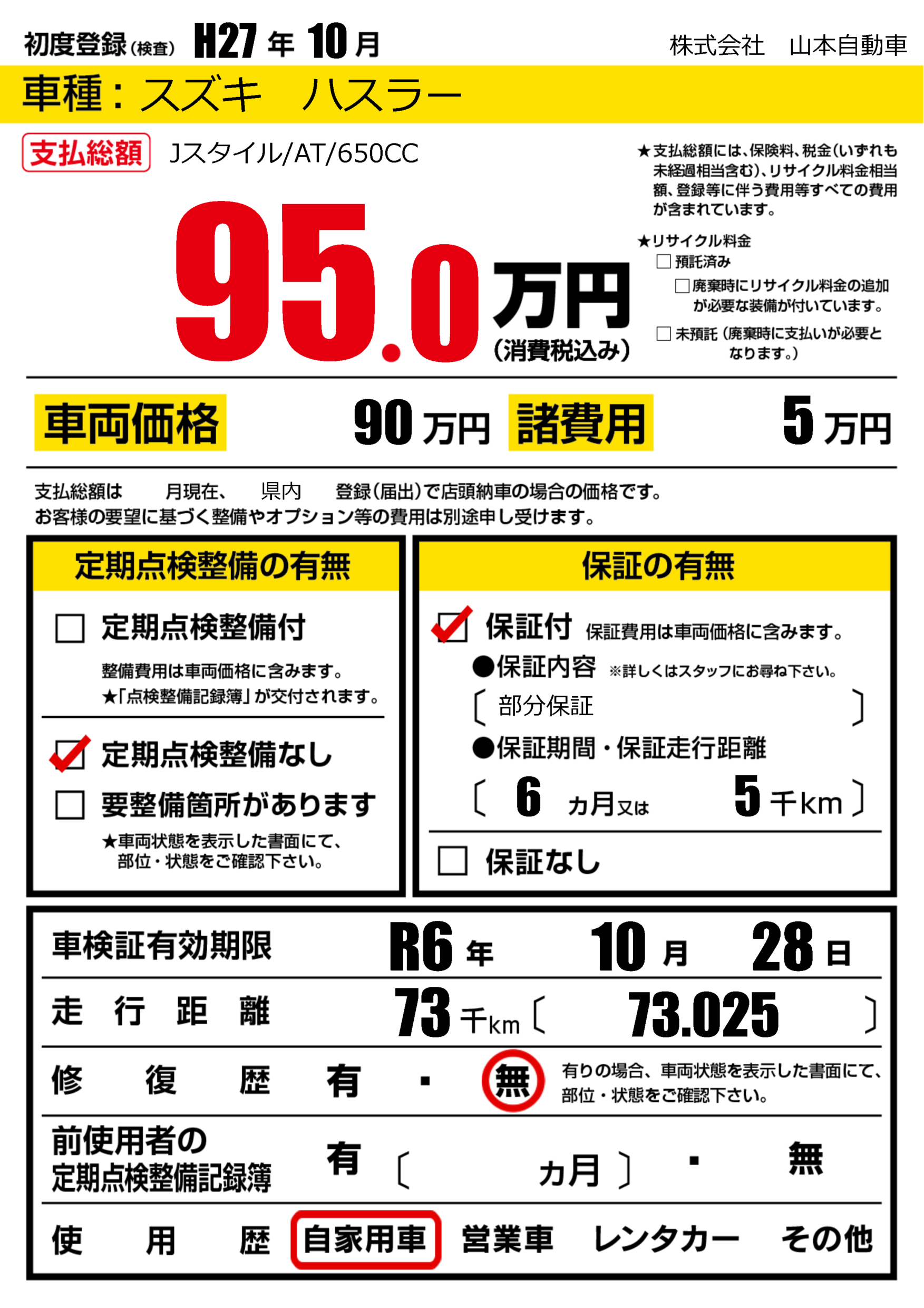 保証付き 保証内容(部分保証) 6ヶ月または(5)千kmまで |