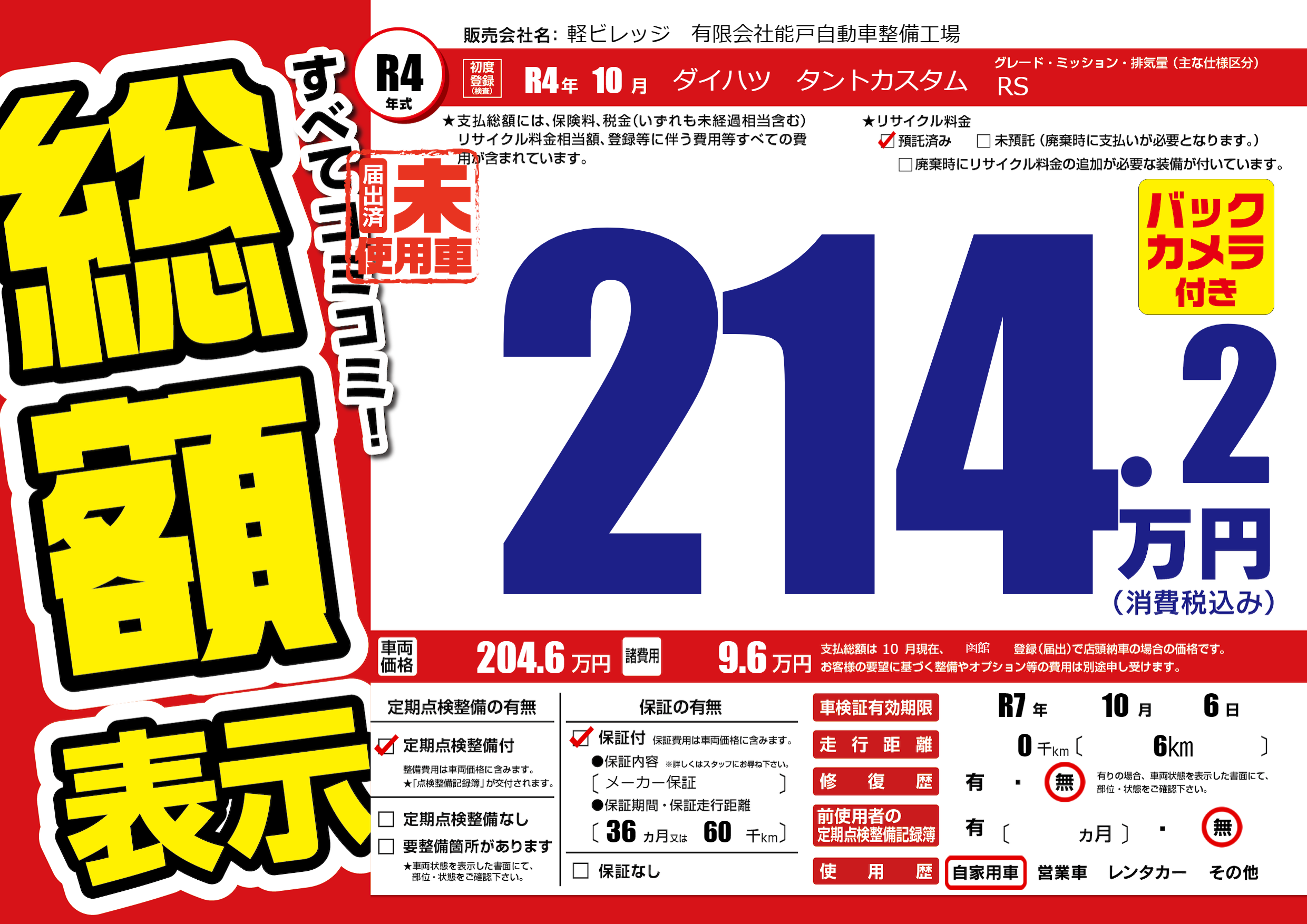 なし | 車検制限 | R7年10月6月 |