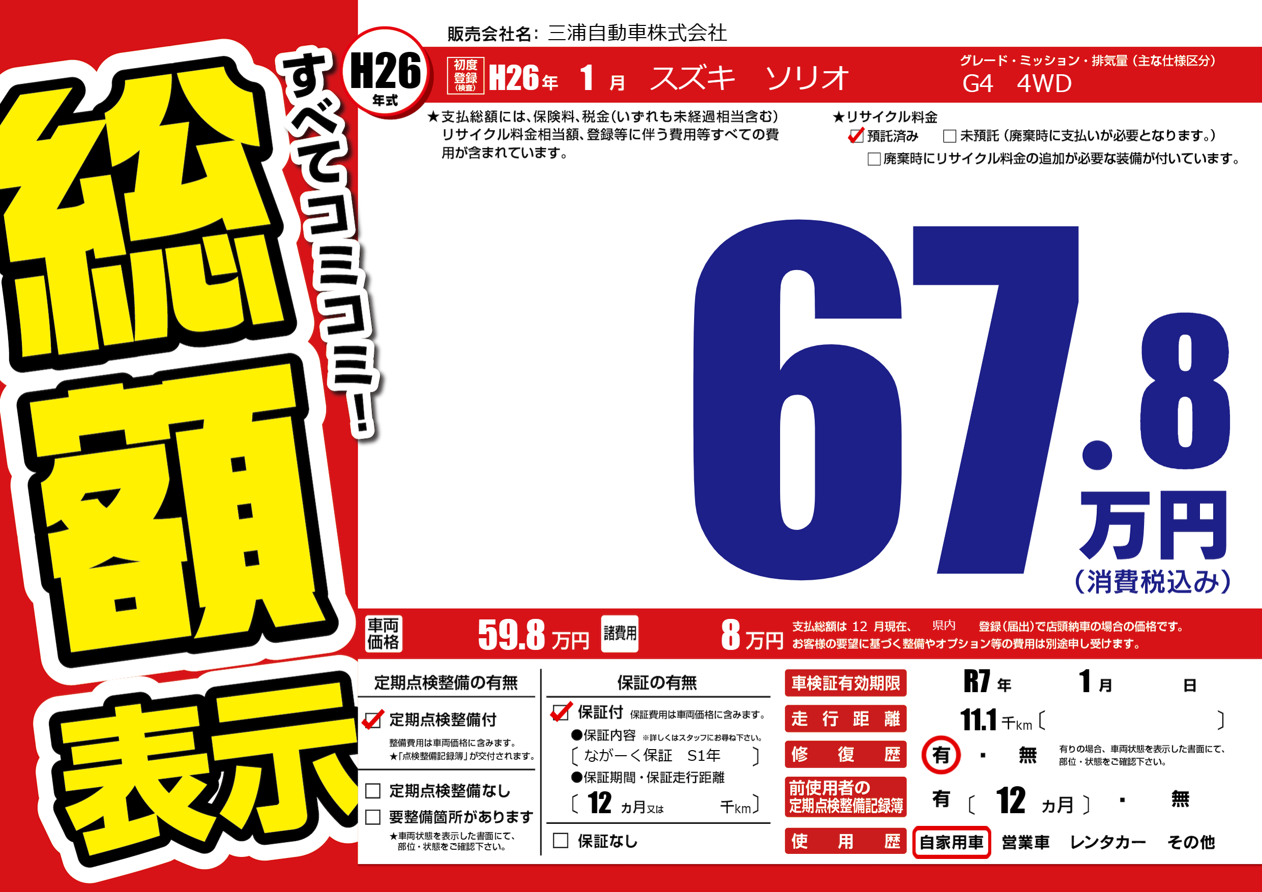 保証付き 保証内容(ながーく保証 S1年) 12ヶ月または()千kmまで |