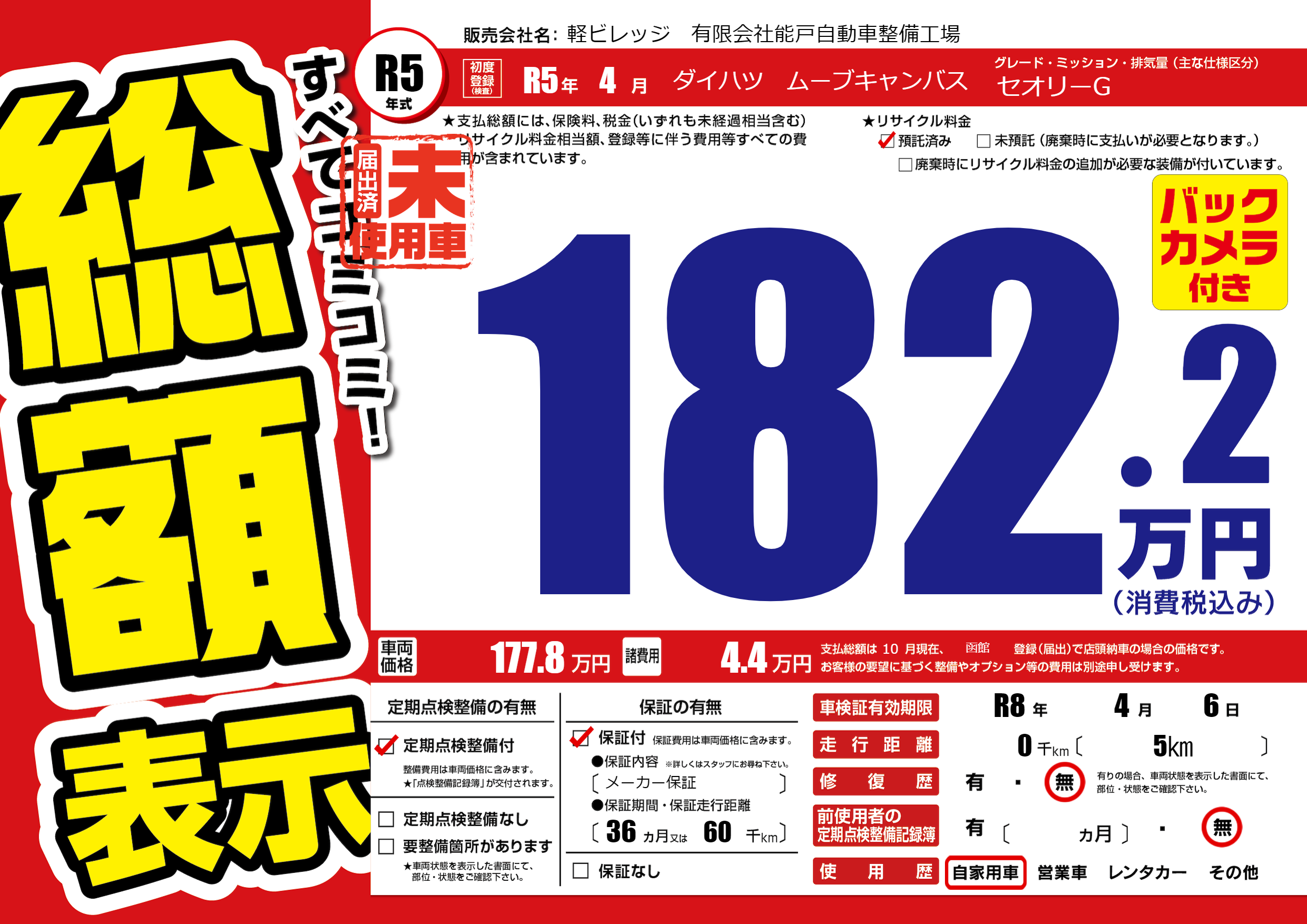 | 車検制限 | R8年 4月 6日 | ||