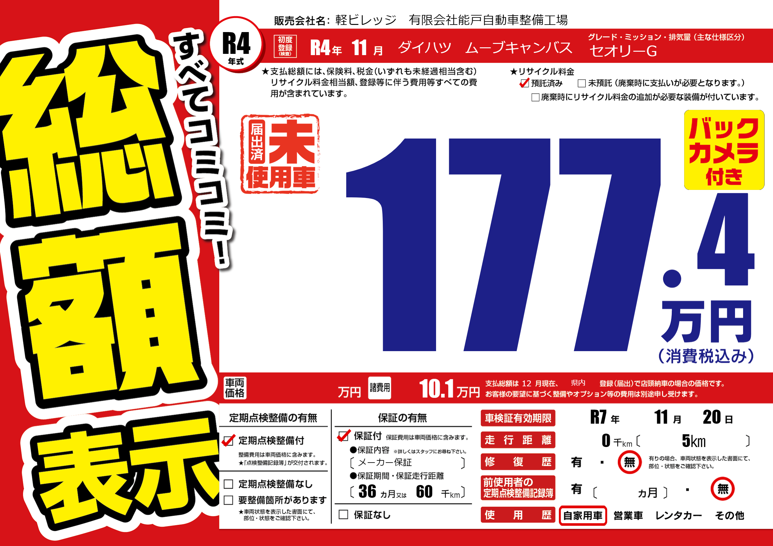 | 走行キロ | - | 初年度登録 | R4年11月 |