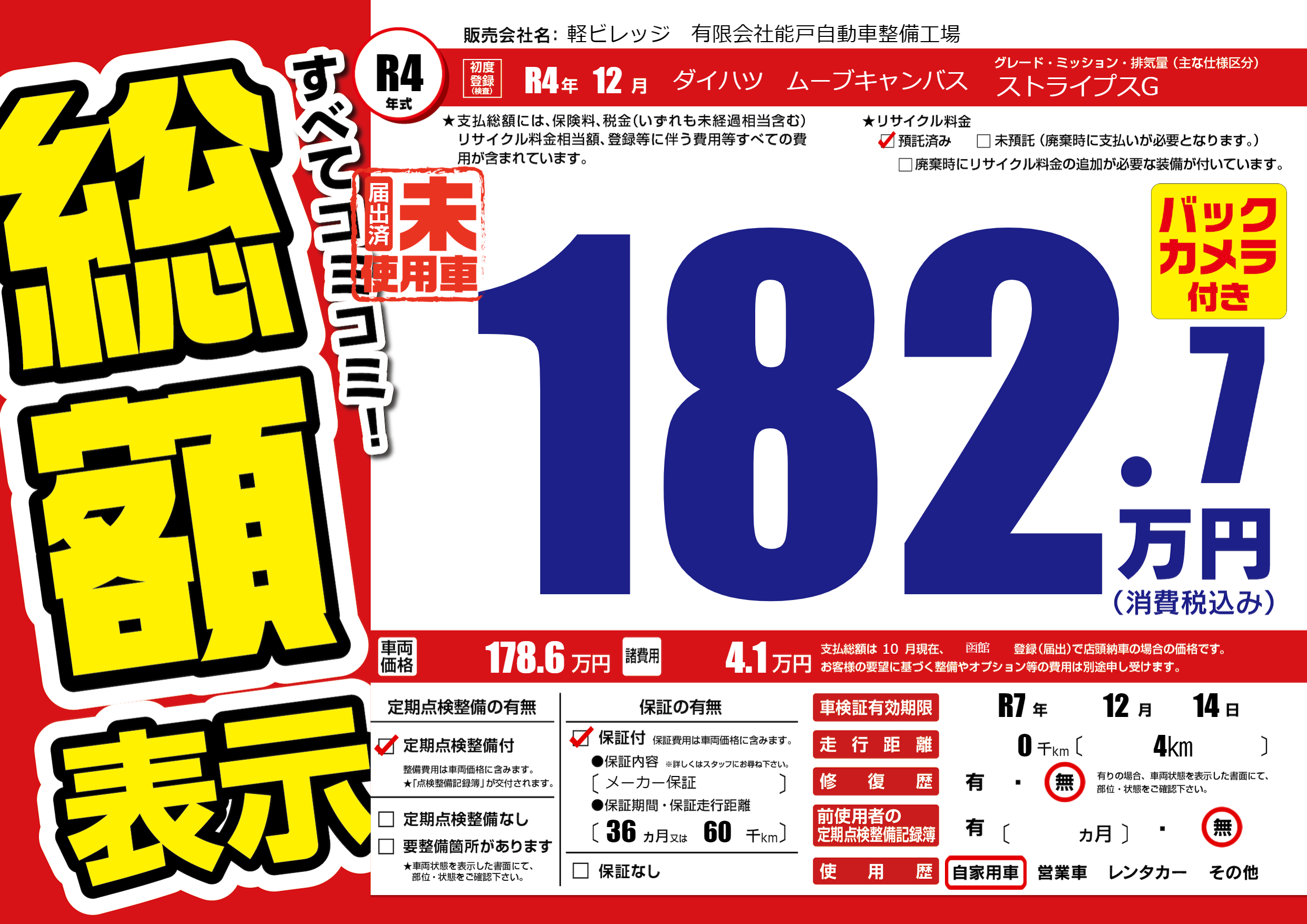 | 走行キロ | - | 初年度登録 | R4年12月 |