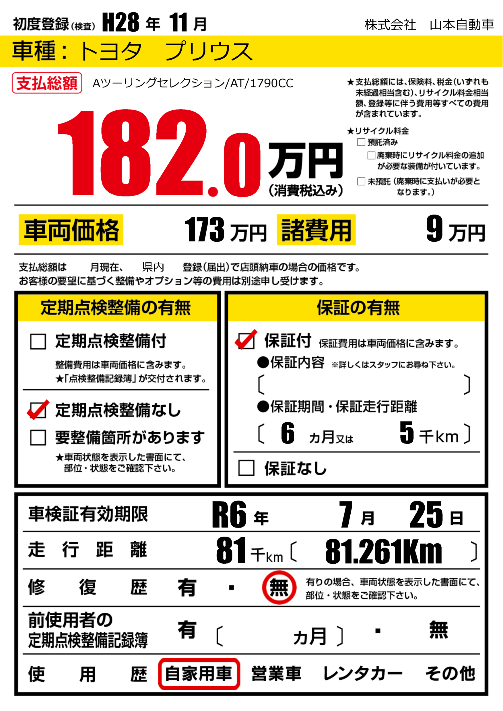 | 車名 | トヨタ プリウス | グレード ミッション 排気量 |
