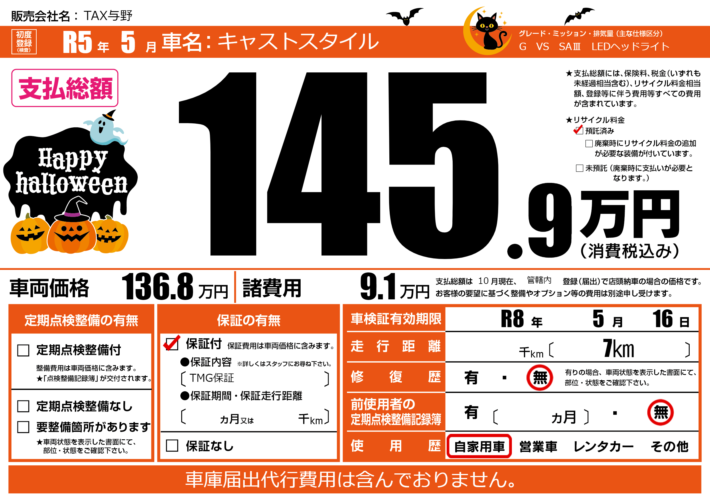 | 走行キロ | - | 初年度登録 | R5年5月 |