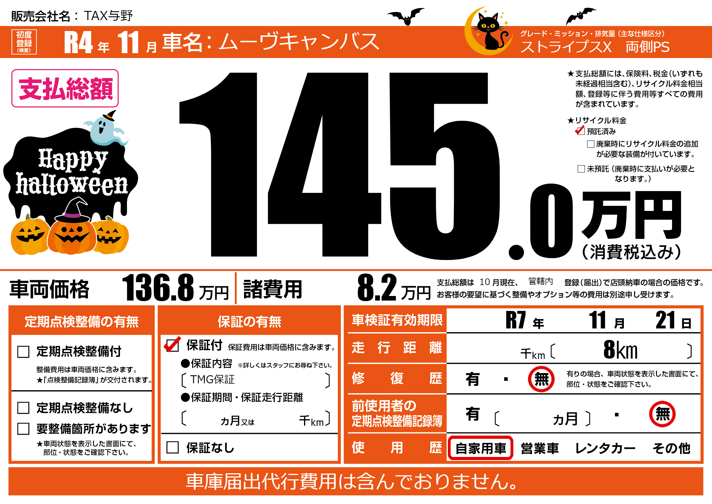 | 走行キロ | - | 初年度登録 | R4年11月 |