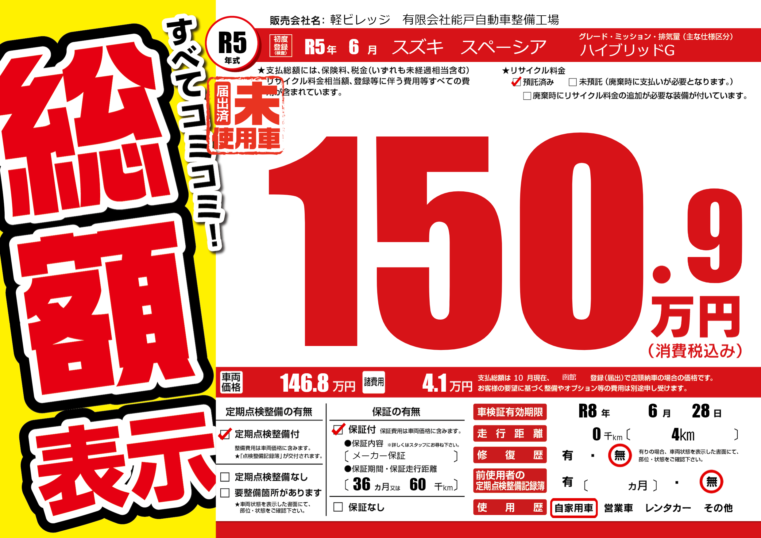 なし | 車検制限 | R8年6月28月 |