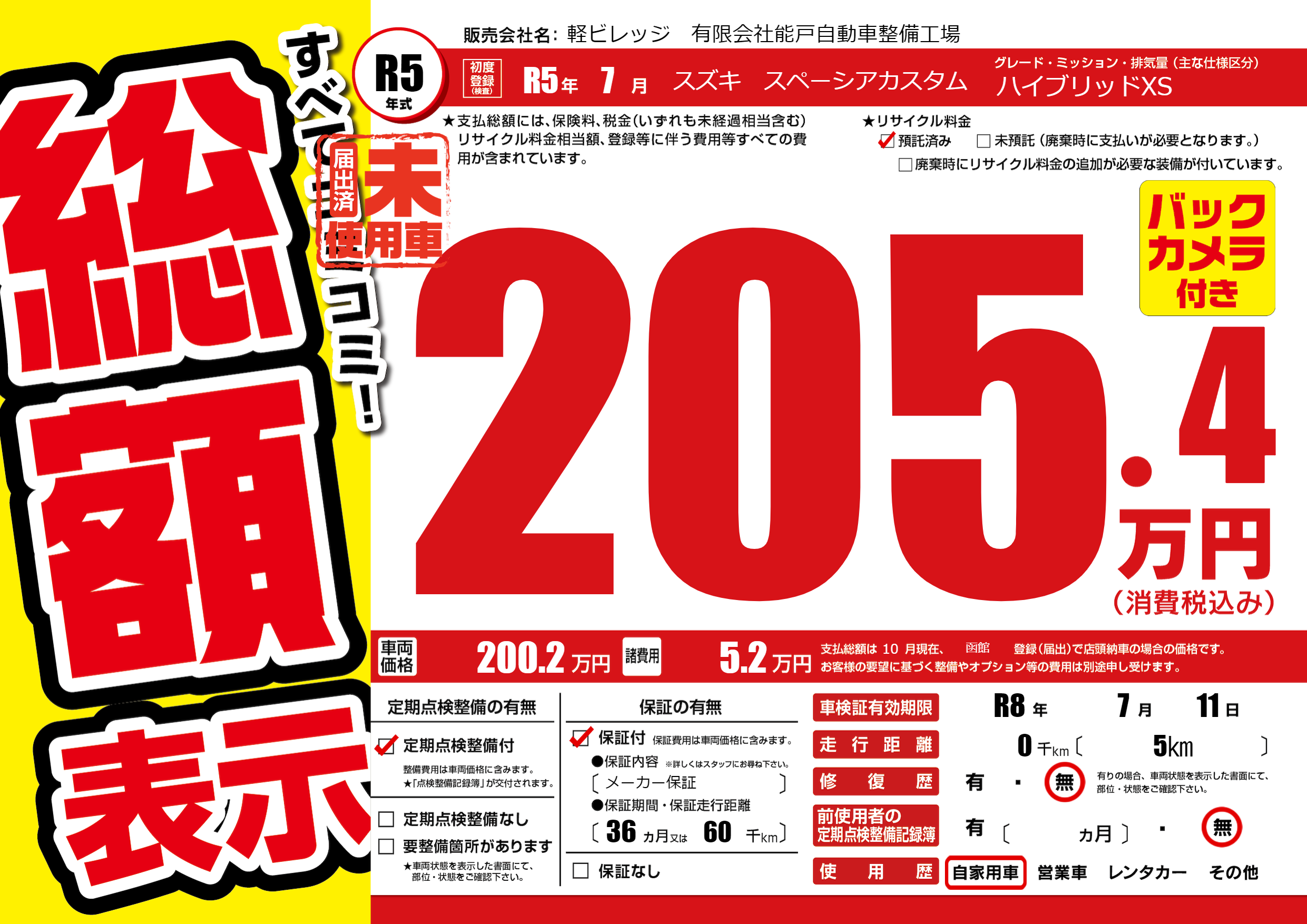 | 走行キロ | - | 初年度登録 | R5年7月 |