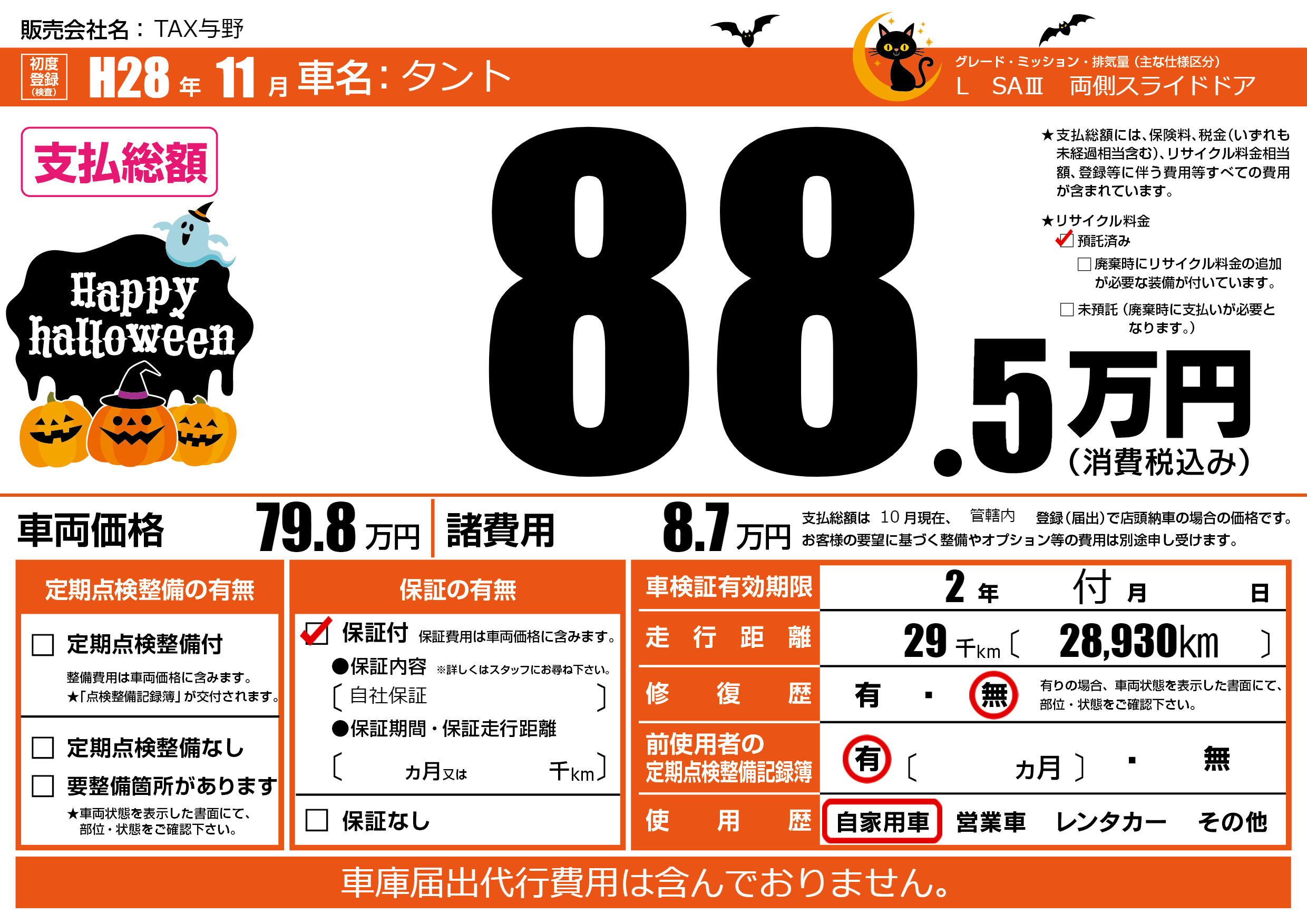 | 走行キロ | 2.9万km | 初年度登録 | H28年11月 |