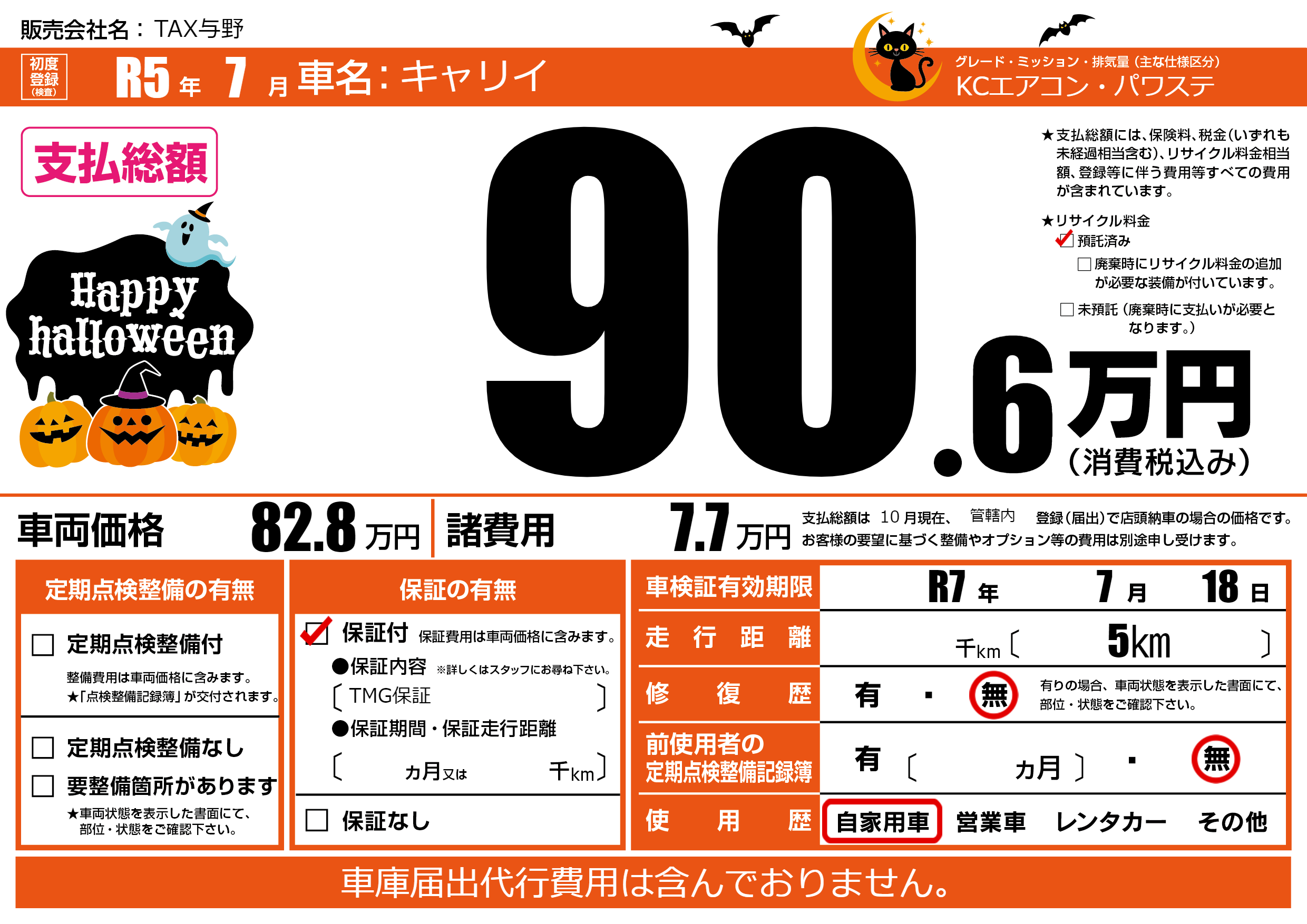 | 走行キロ | - | 初年度登録 | R5年7月 |