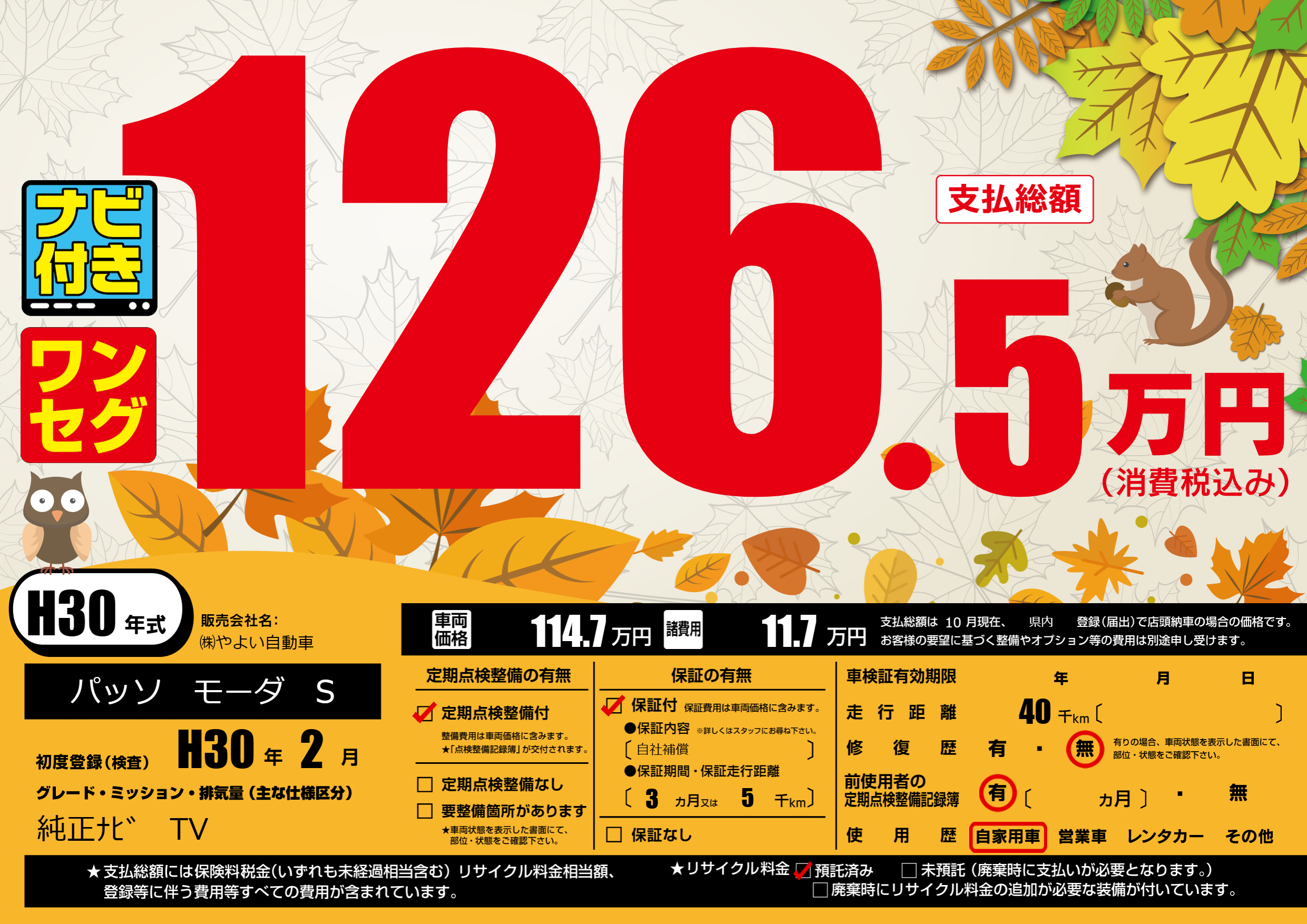 | 初年度登録 | H30年2月 | ||
