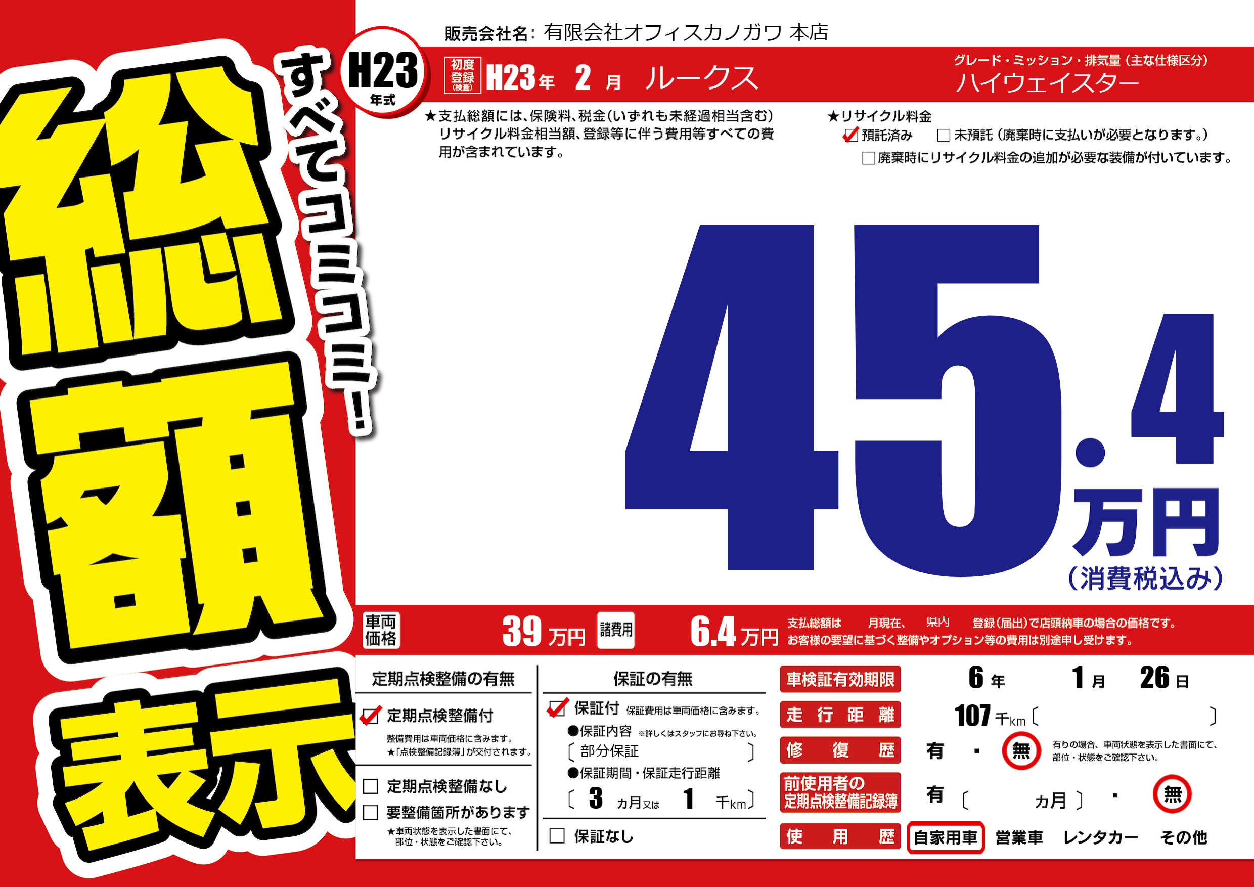 なし | 車検制限 | 6年1月26月 |