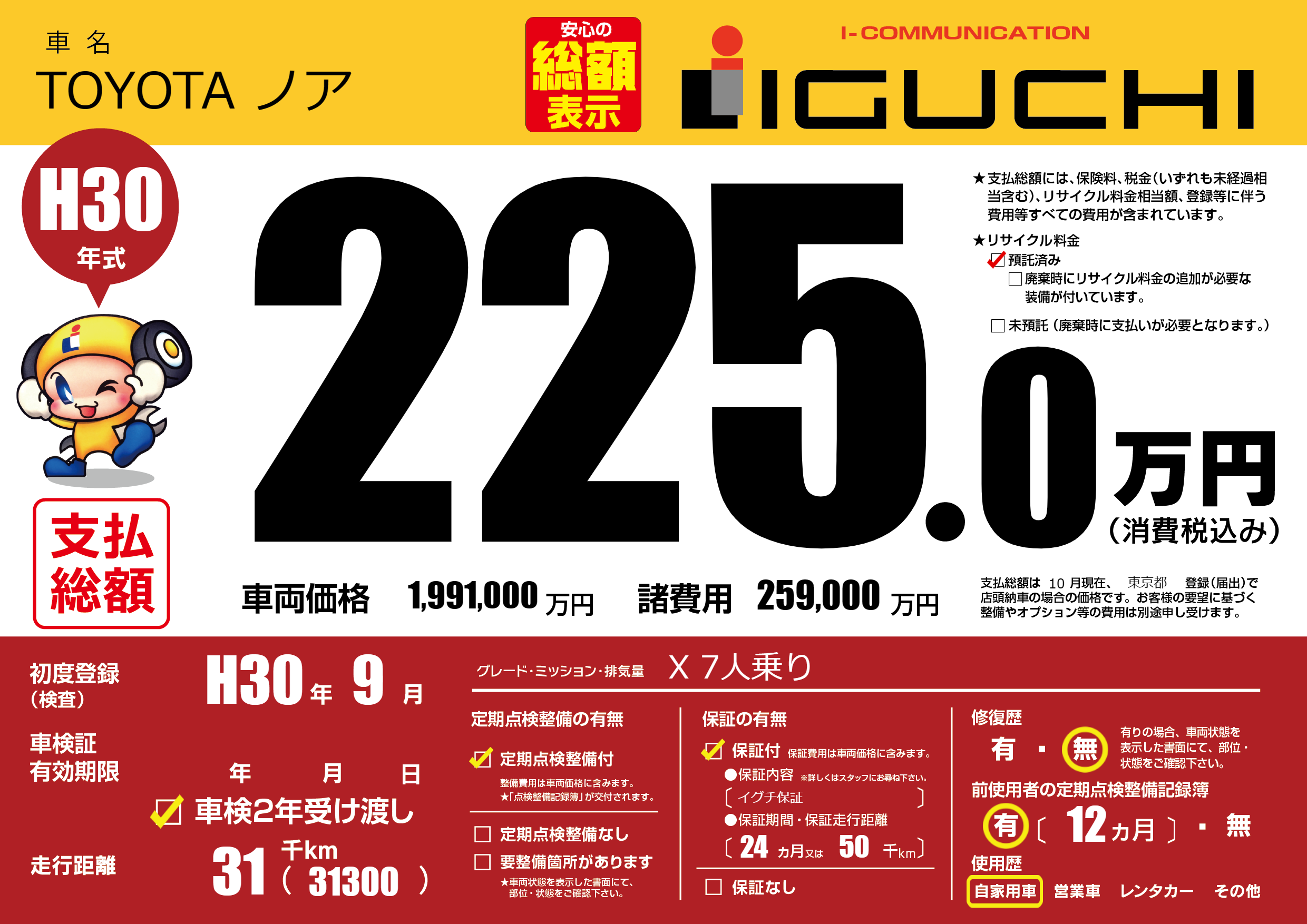 保証付き 保証内容(イグチ保証) 24ヶ月または(50)千kmまで |