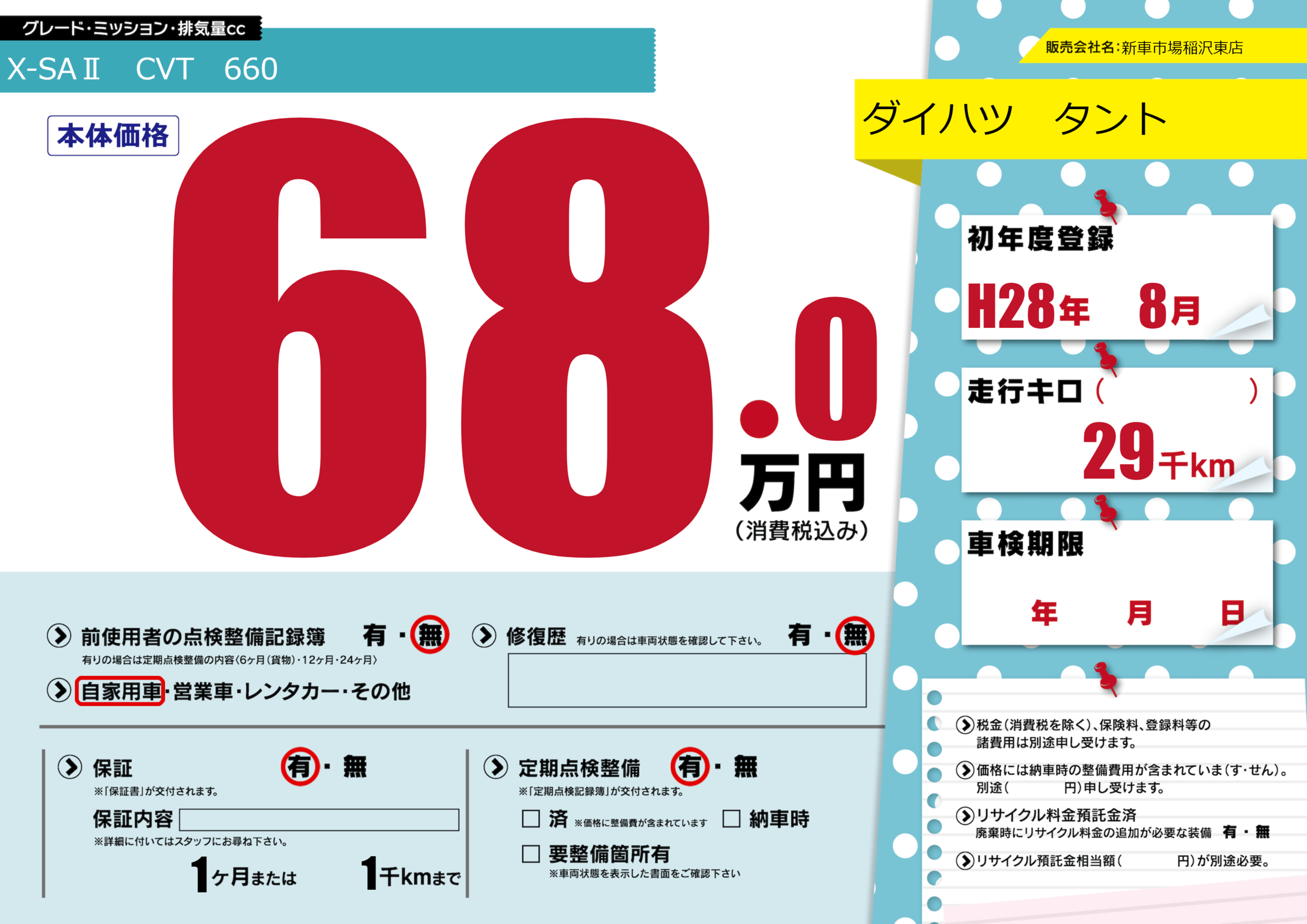 保証付き 保証内容(---) 1ヶ月または(1)千kmまで |