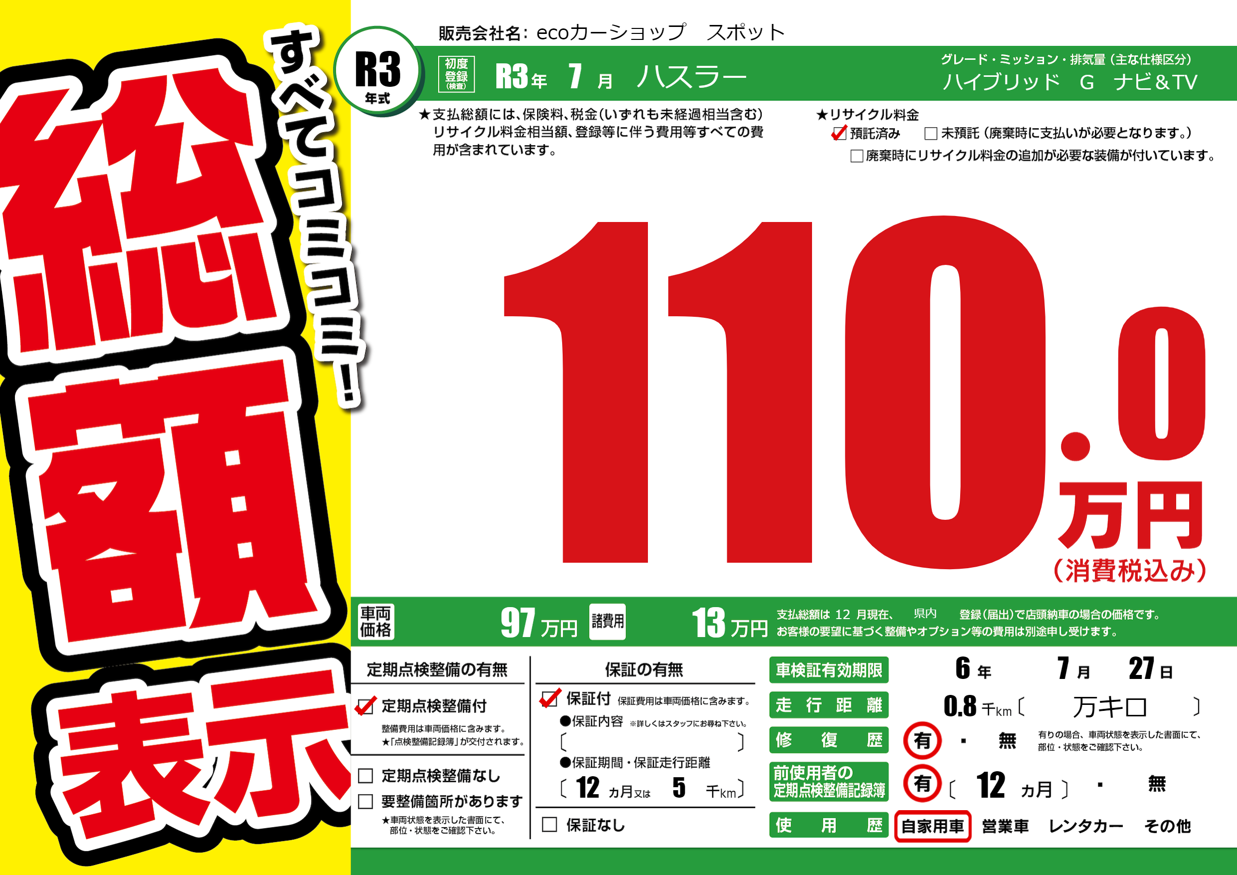 保証付き 保証内容(---) 12ヶ月または(5)千kmまで |