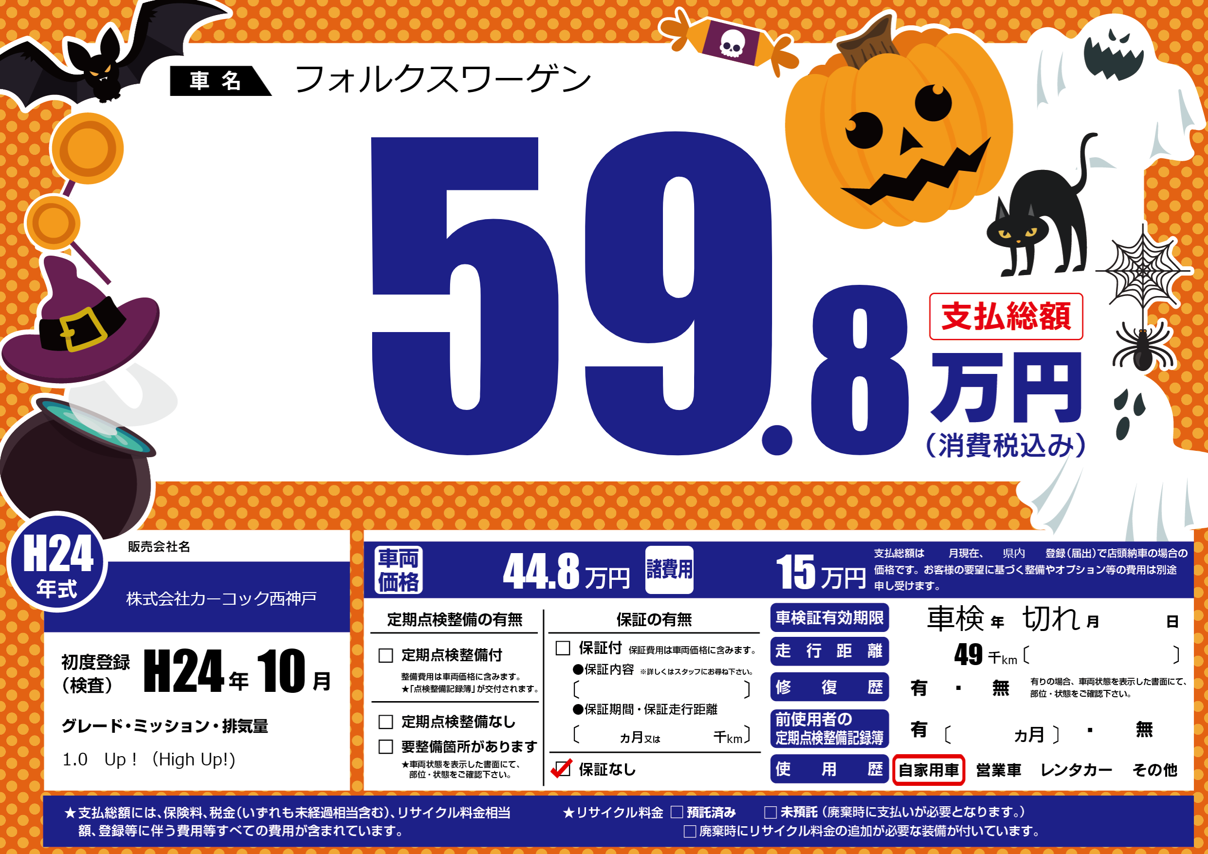 | 走行キロ | 4.9万km | 初年度登録 | H24年10月 |