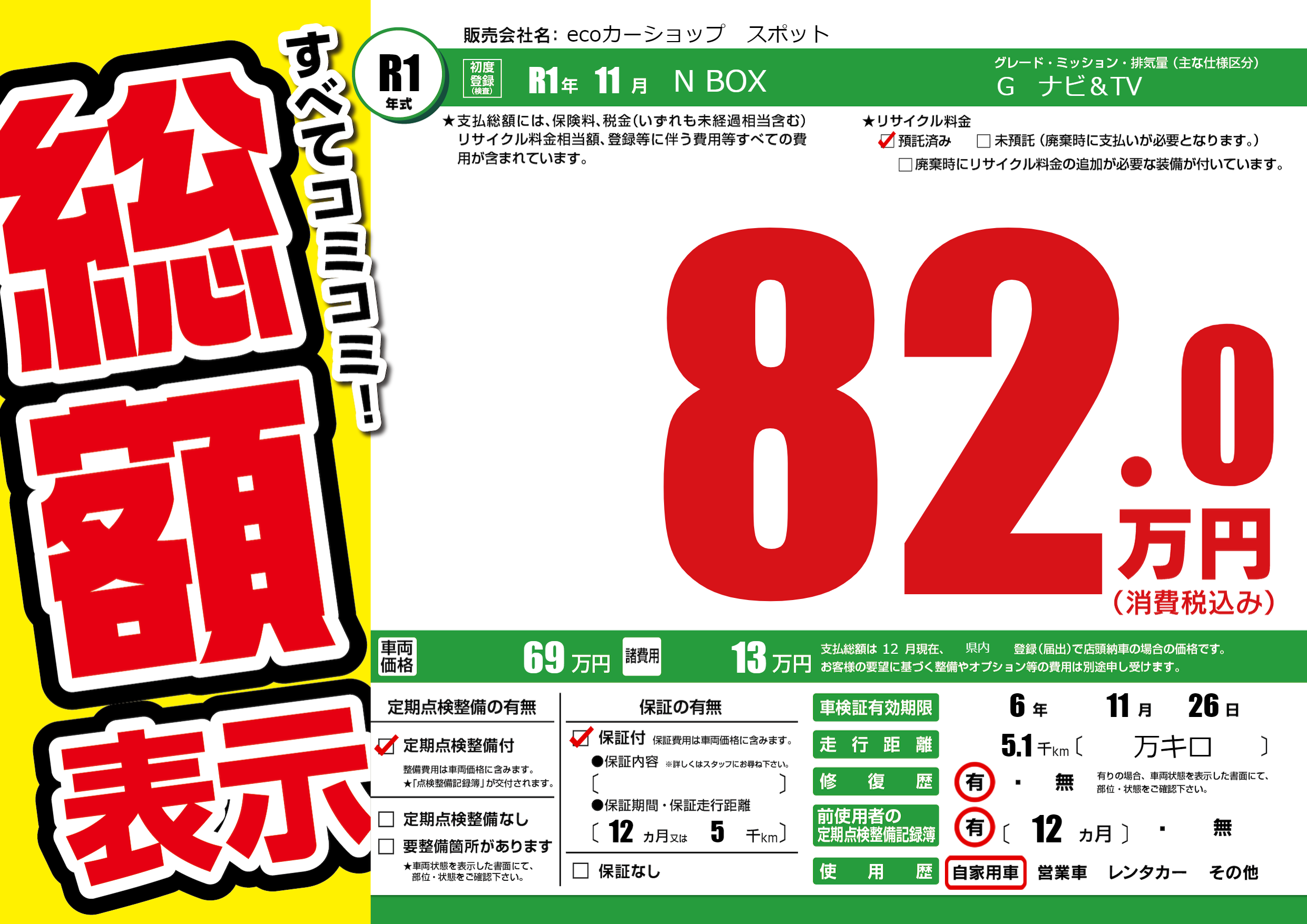 | 車名 | N BOX | グレード ミッション 排気量 |