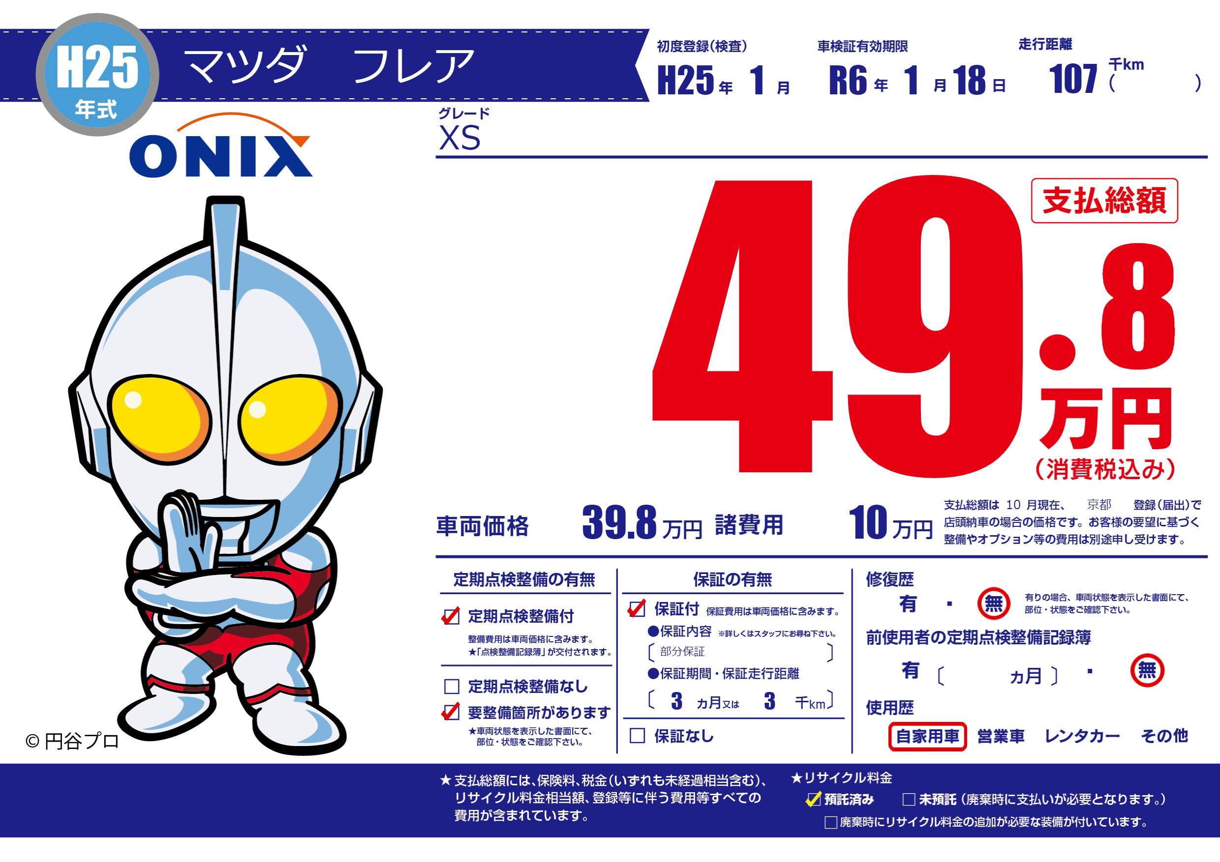 | 走行キロ | 10.7万km | 初年度登録 | H25年1月 |