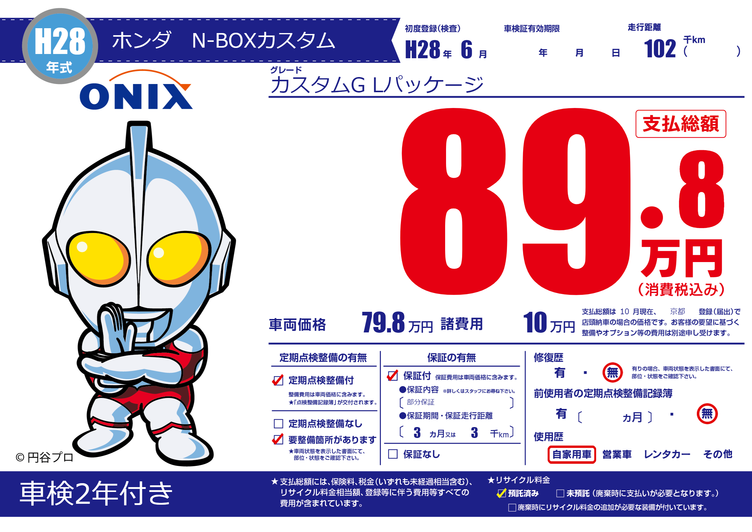 | 走行キロ | 10.2万km | 初年度登録 | H28年6月 |