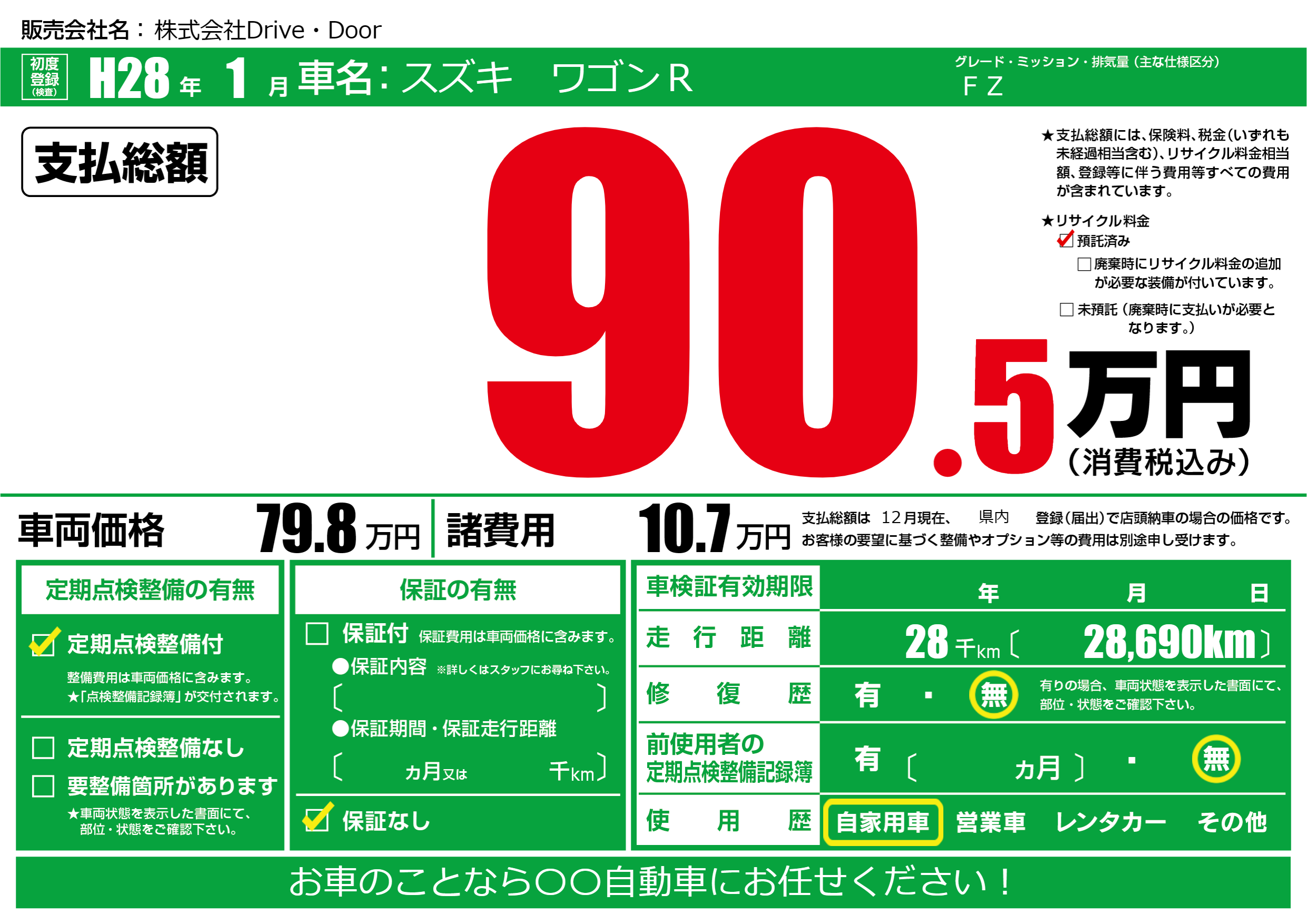 | 車名 | スズキ ワゴンR | グレード ミッション 排気量 |