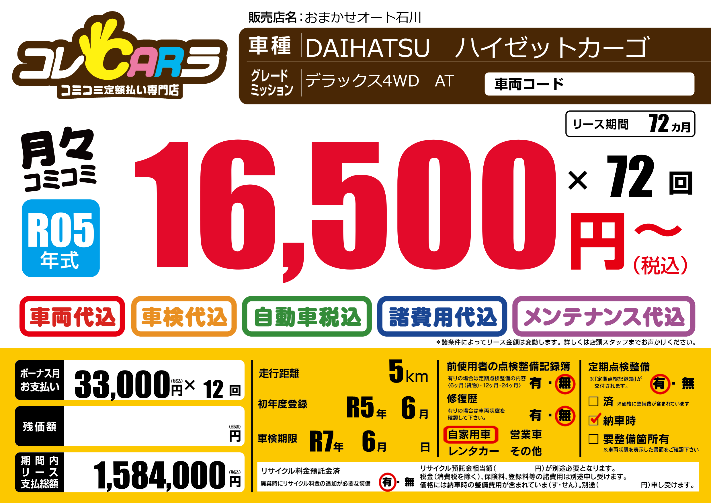 なし | 車検制限 | R7年6月---月 |