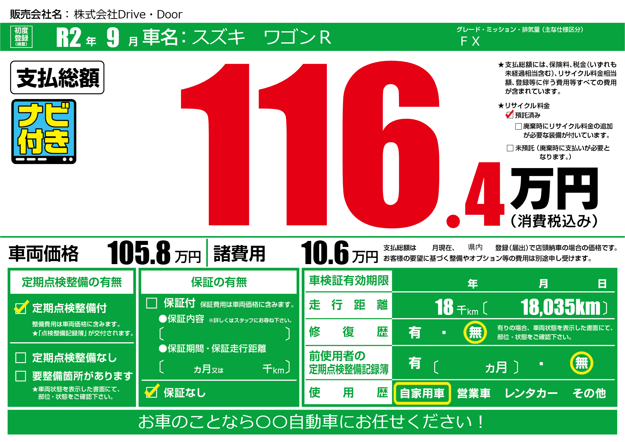 | 走行キロ | 1.8万km | 初年度登録 | R2年9月 |