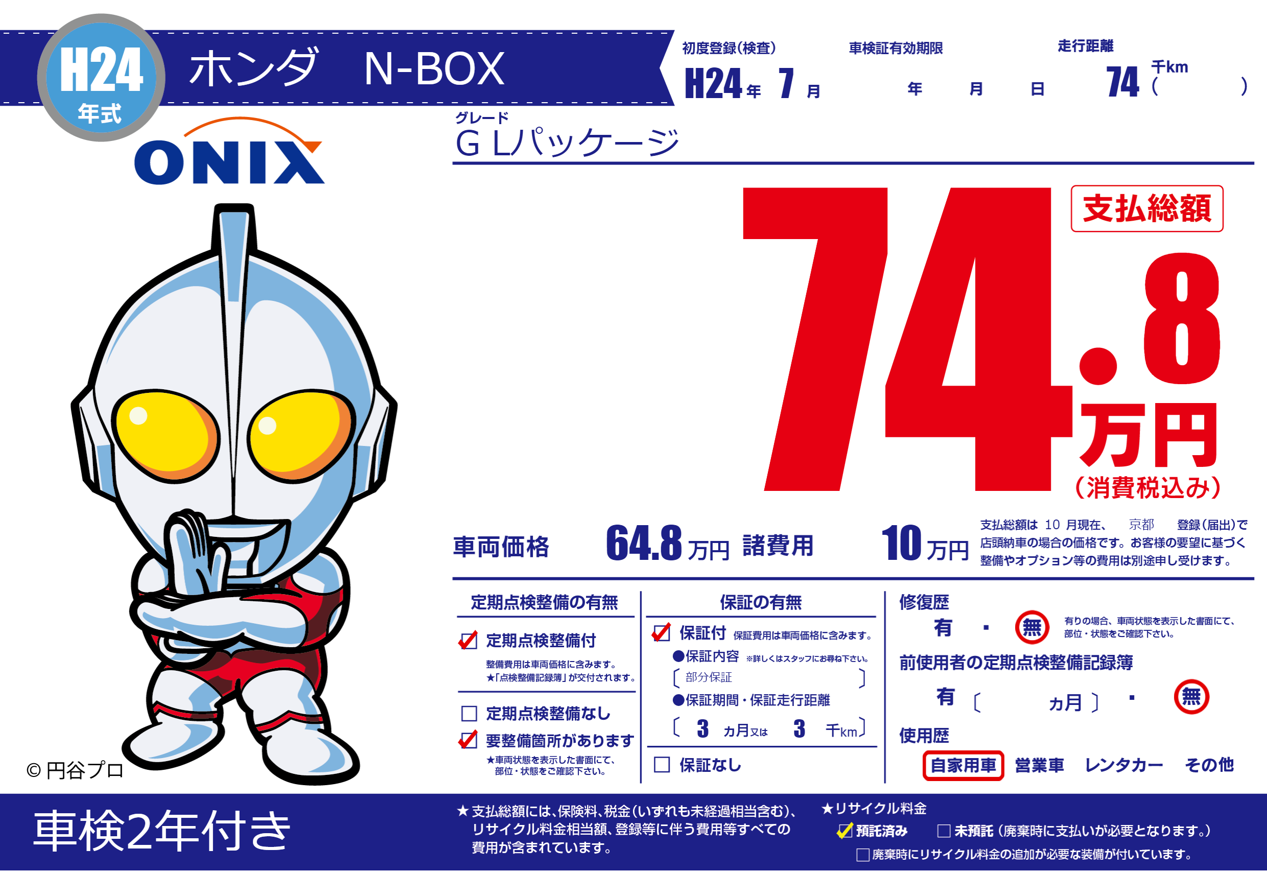 | 走行キロ | 7.4万km | 初年度登録 | H24年7月 |