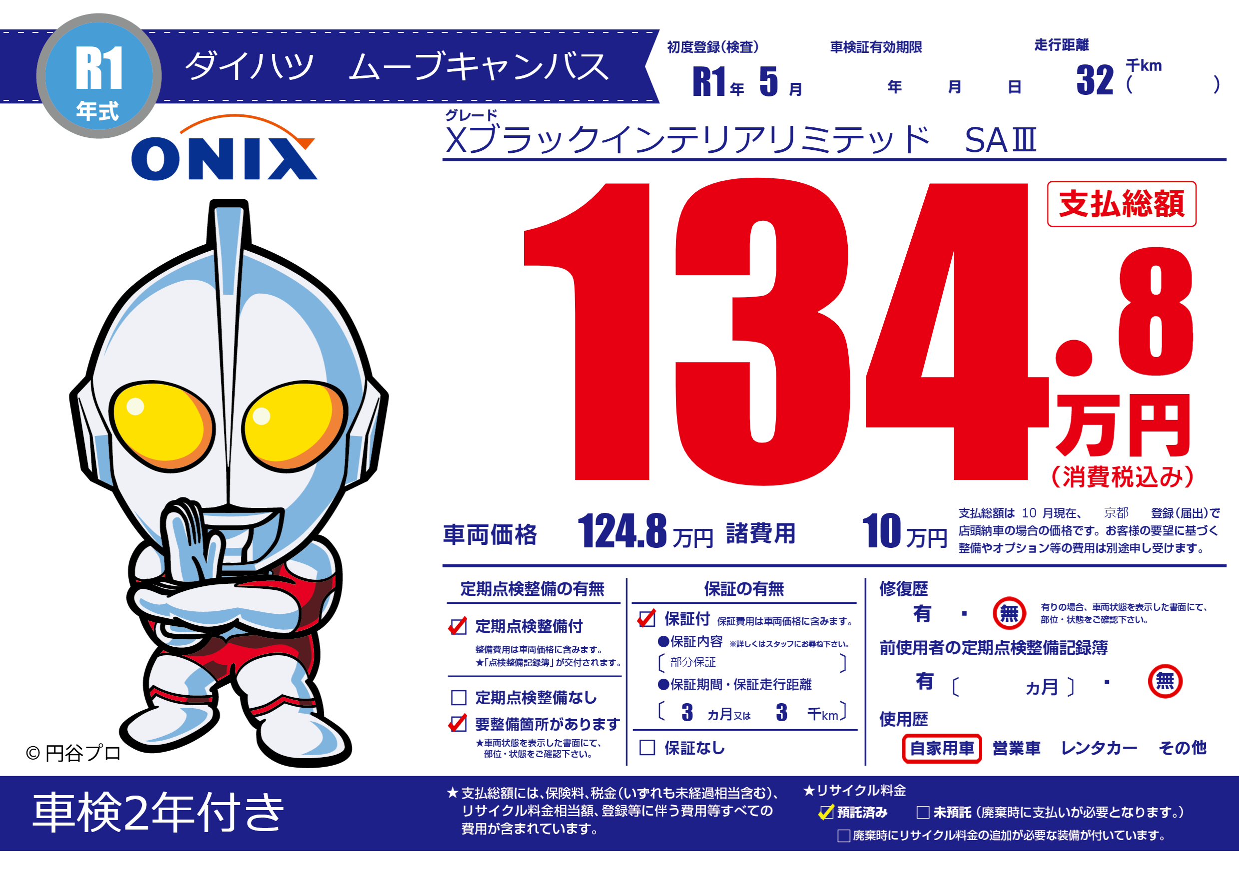 | 車名 | ダイハツ ムーブキャンバス | グレード ミッション 排気量 |