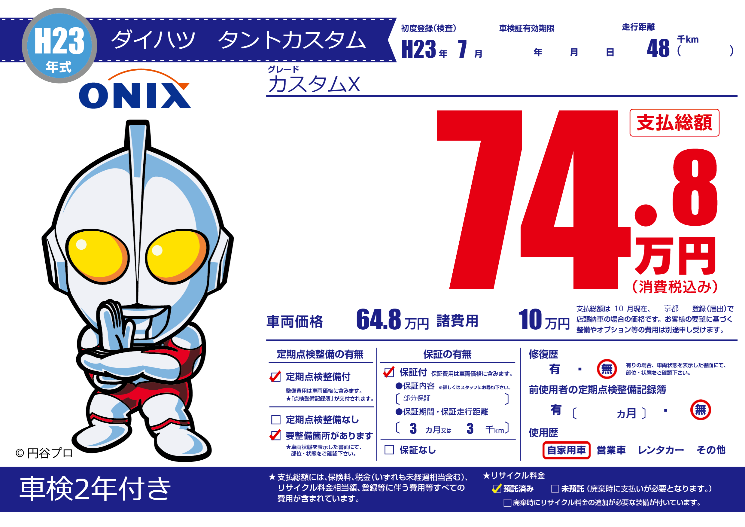 | 走行キロ | 4.8万km | 初年度登録 | H23年7月 |