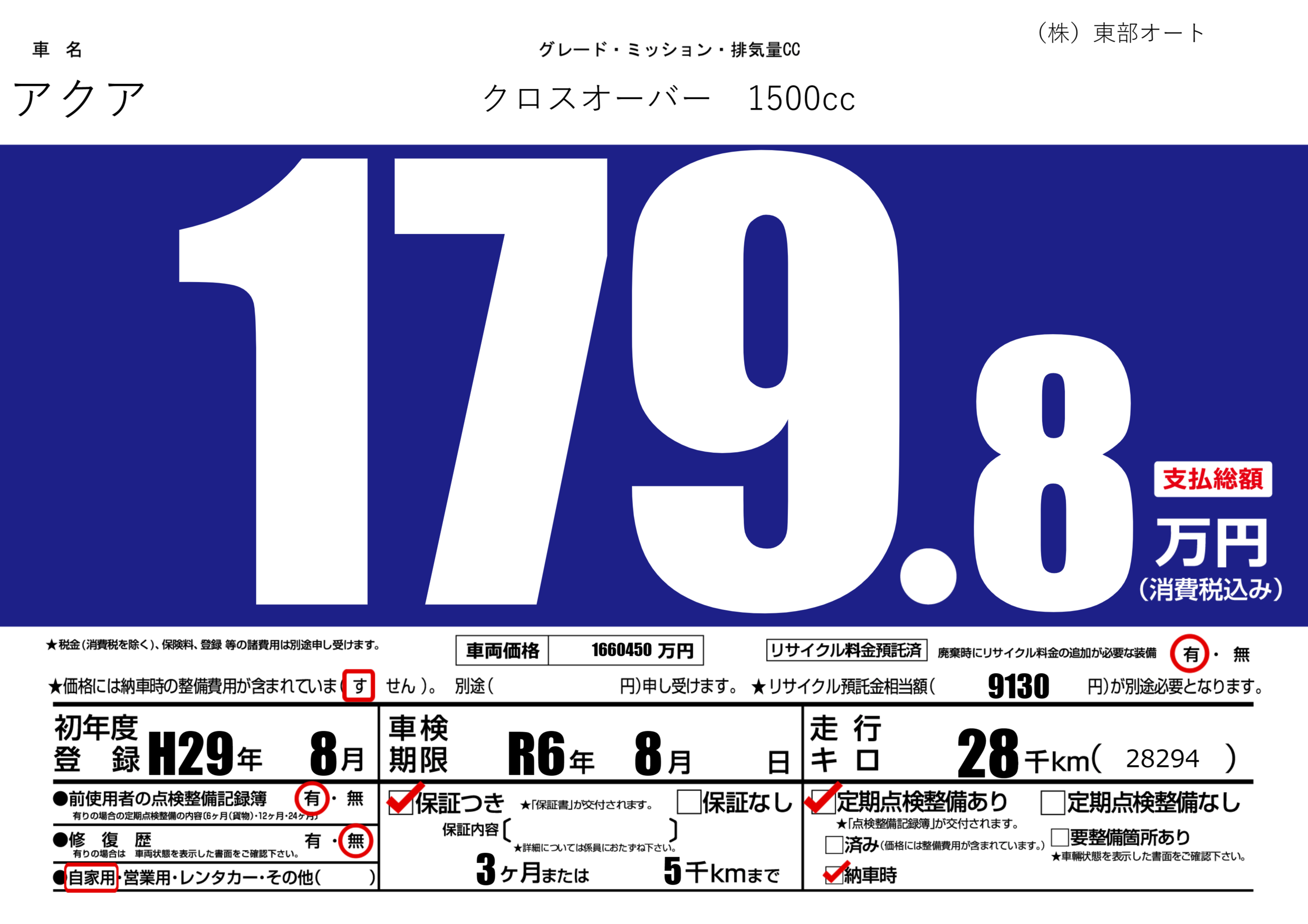 | 定期点検整備 | 定期点検整備あり 納車時あり | ||