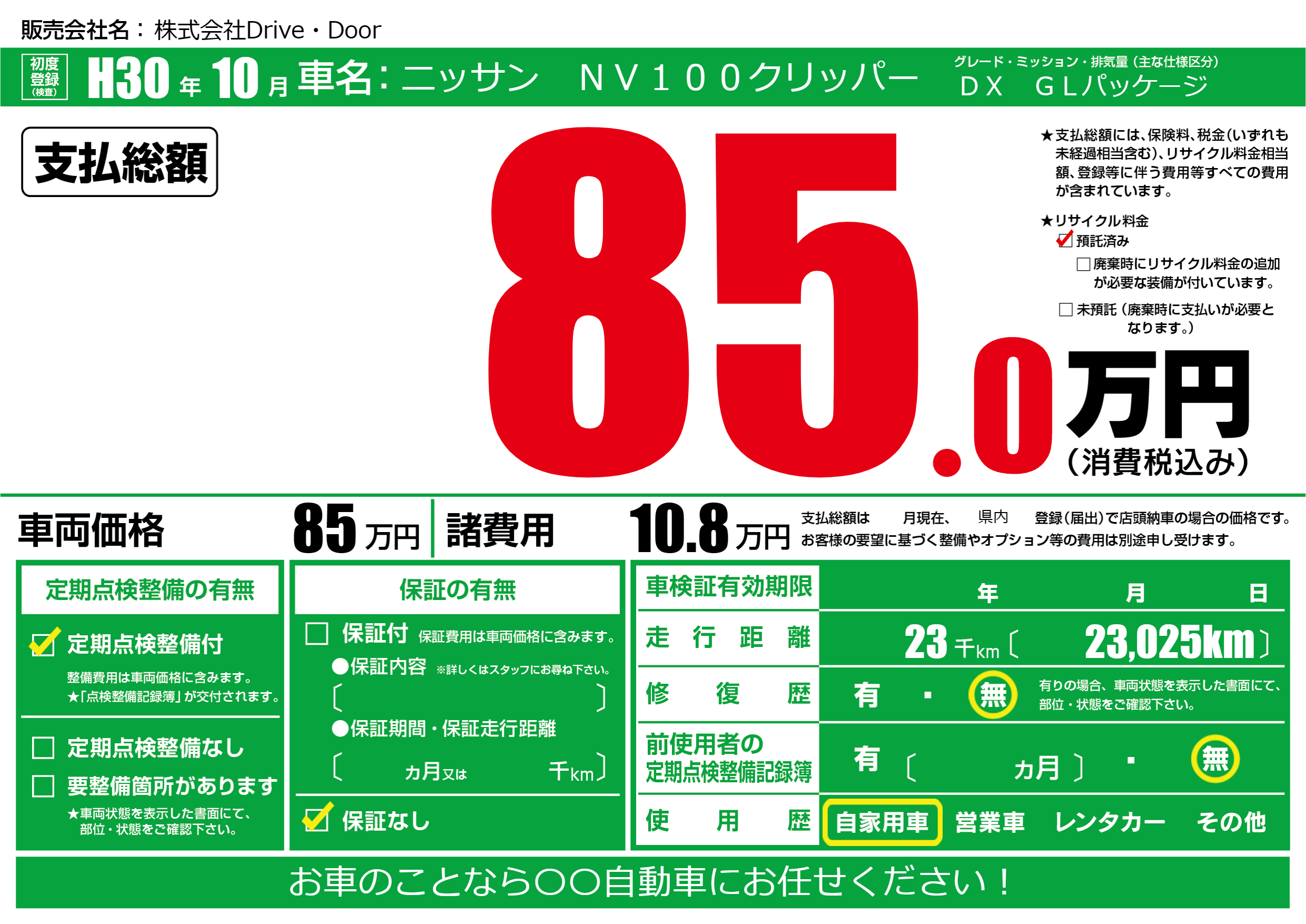 | 定期点検整備 | 定期点検整備あり | ||