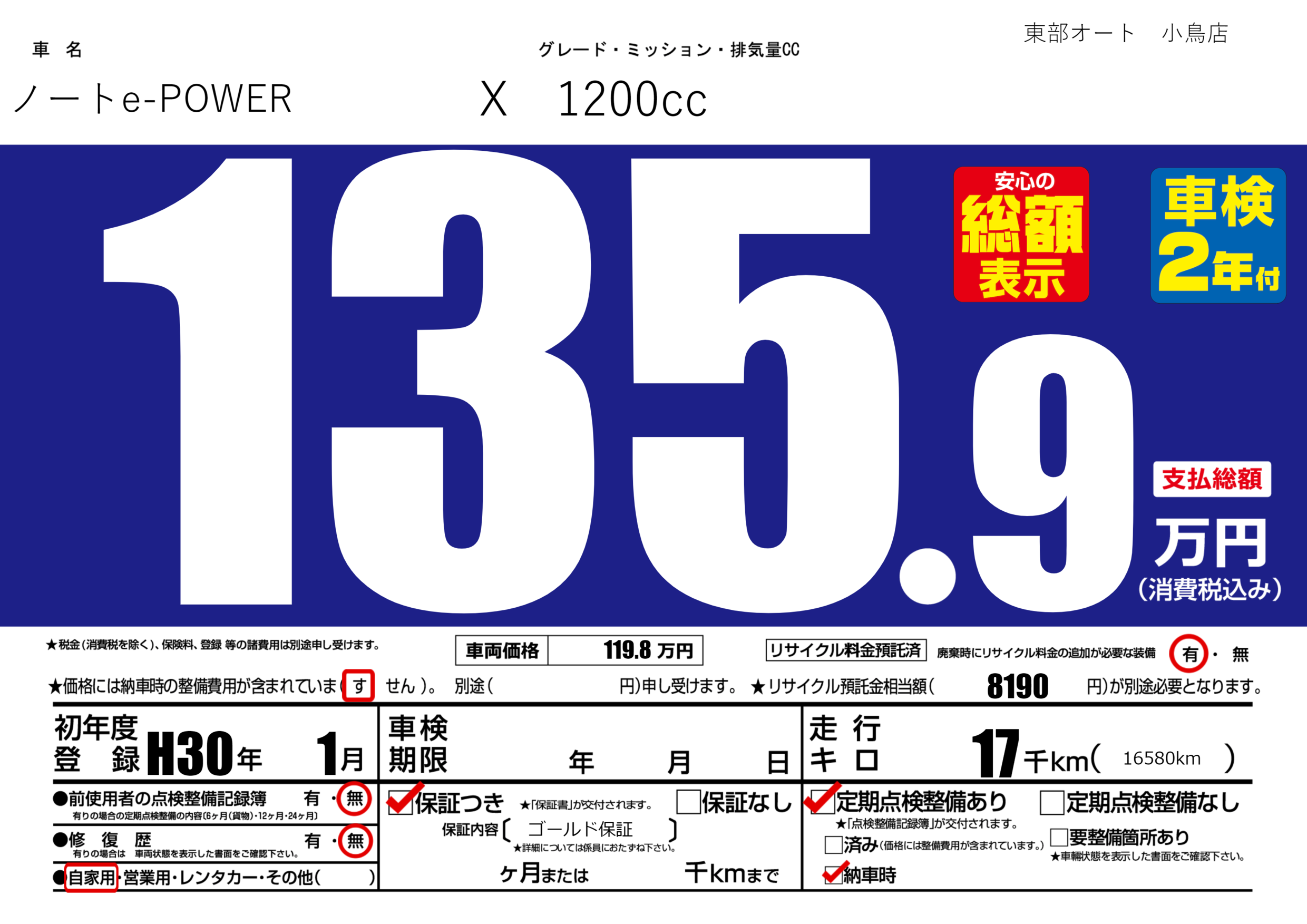 保証付き 保証内容( ゴールド保証) ヶ月または千km |