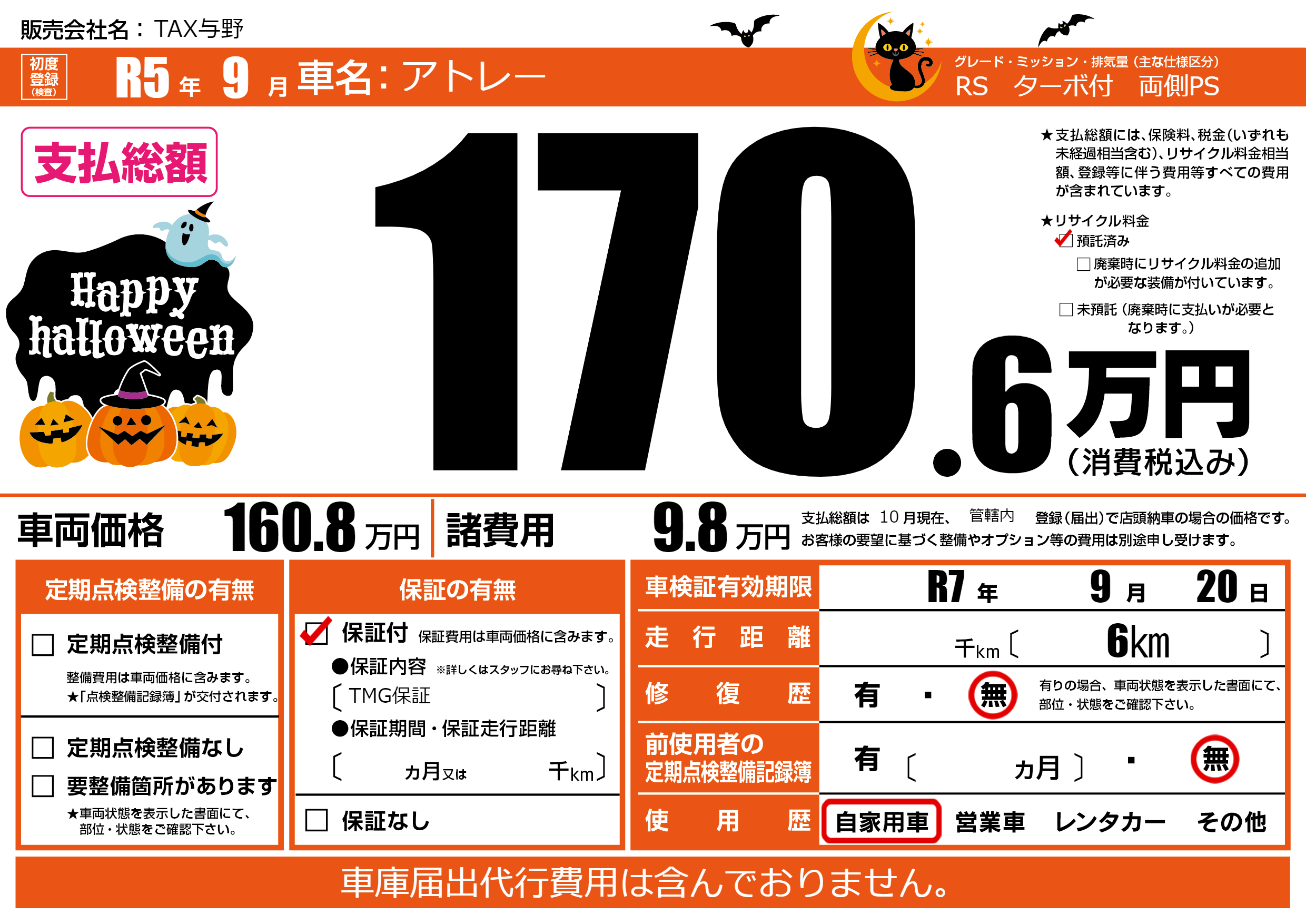 | 走行キロ | - | 初年度登録 | R5年9月 |