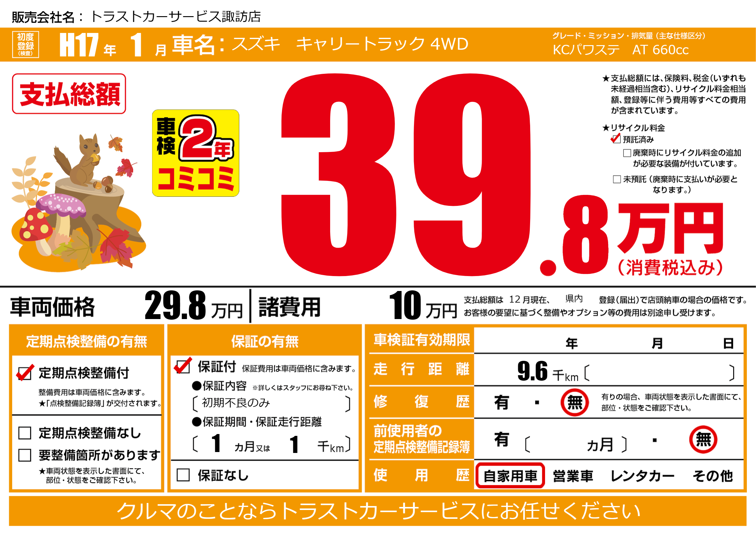 保証内容(初期不良のみ) 1ヶ月または1千km