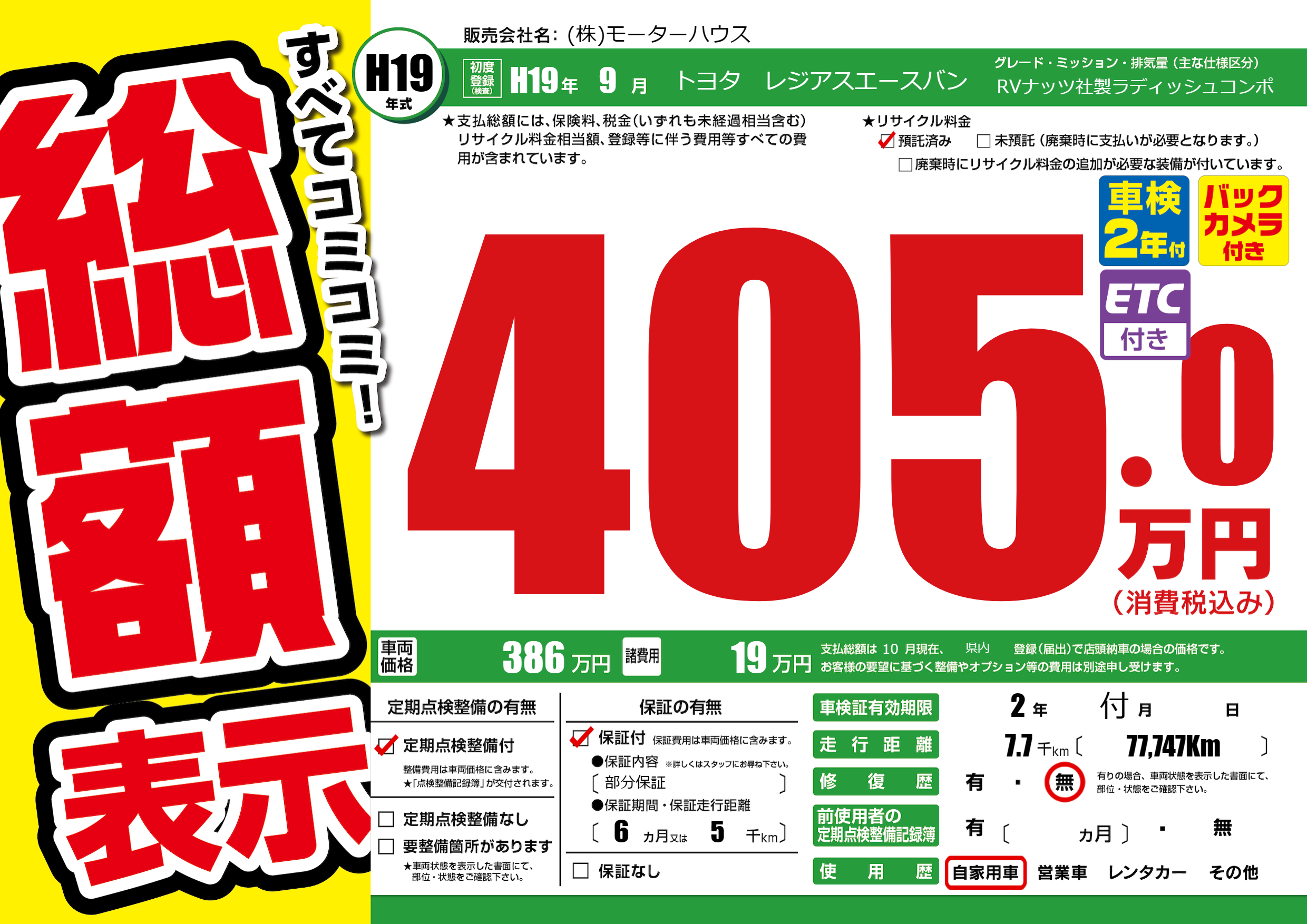 | 定期点検整備 | 定期点検整備あり | ||