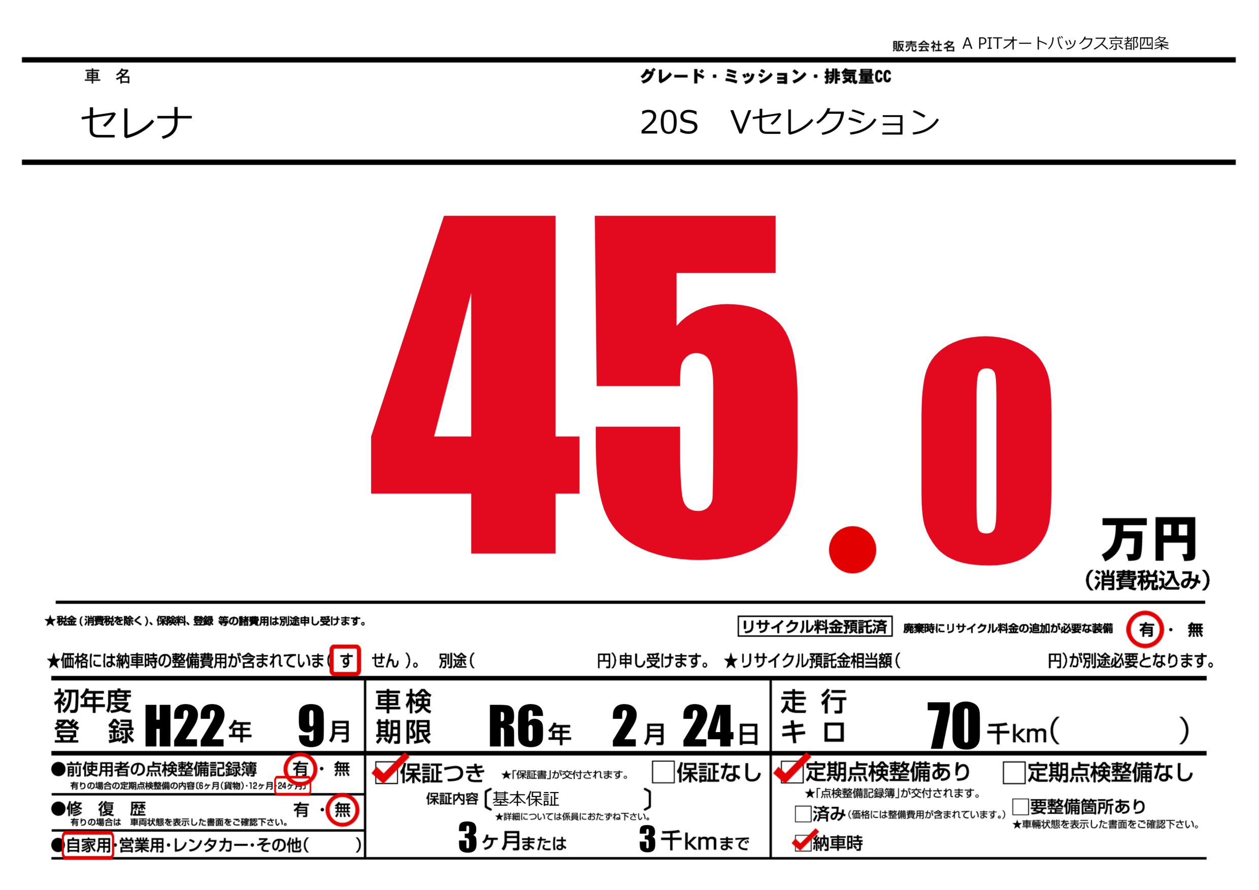 | 定期点検整備 | 定期点検整備あり 納車時あり | ||
