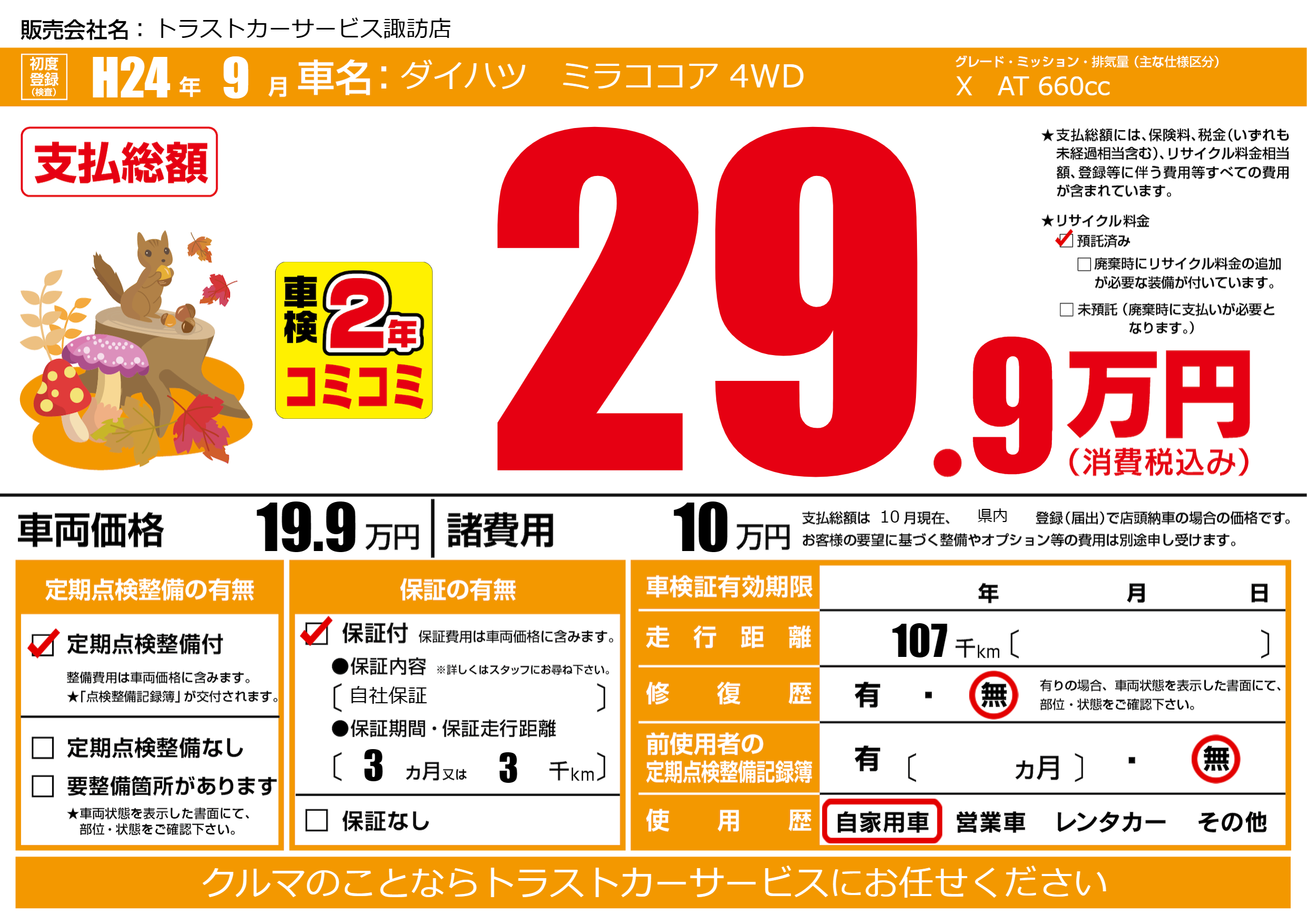 | 定期点検整備 | 定期点検整備あり | ||