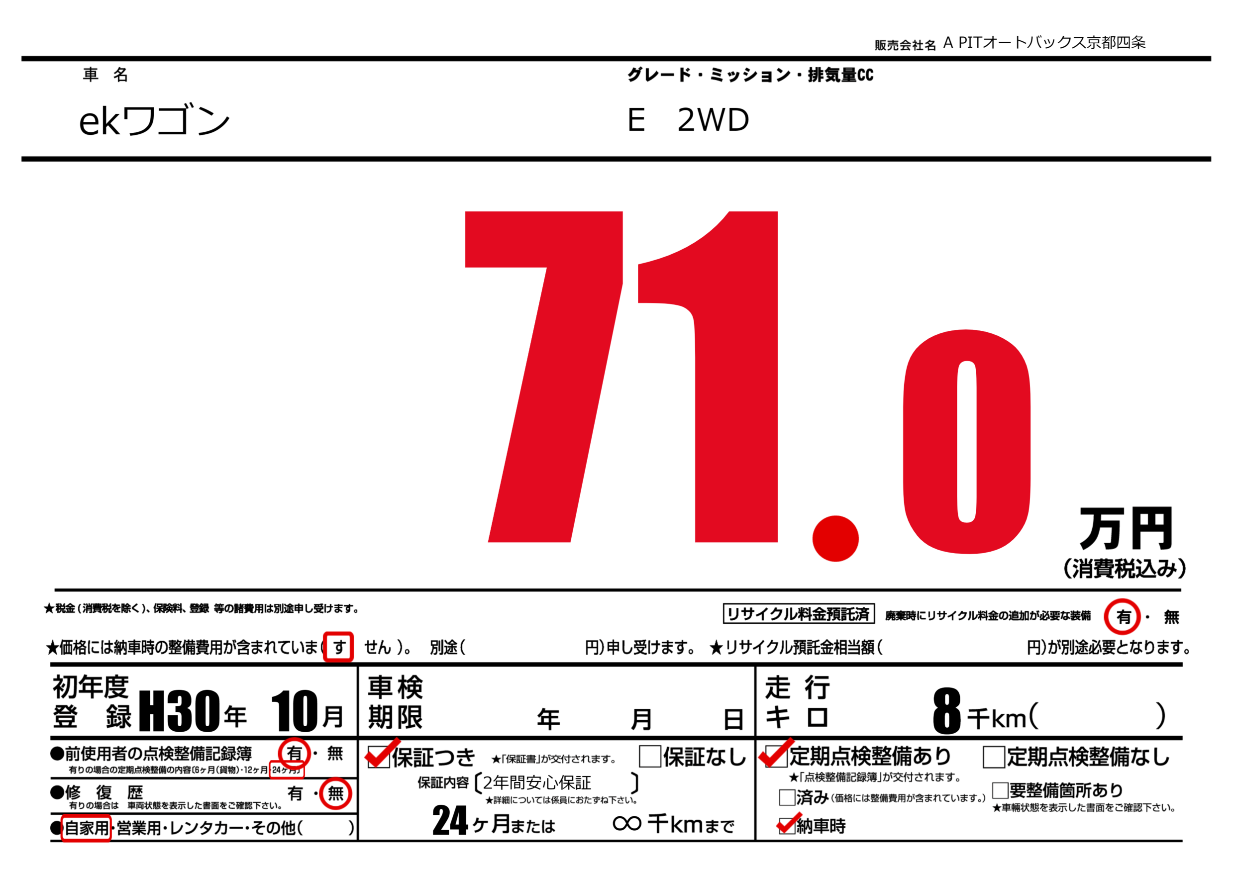 | 定期点検整備 | 定期点検整備あり 納車時あり | ||
