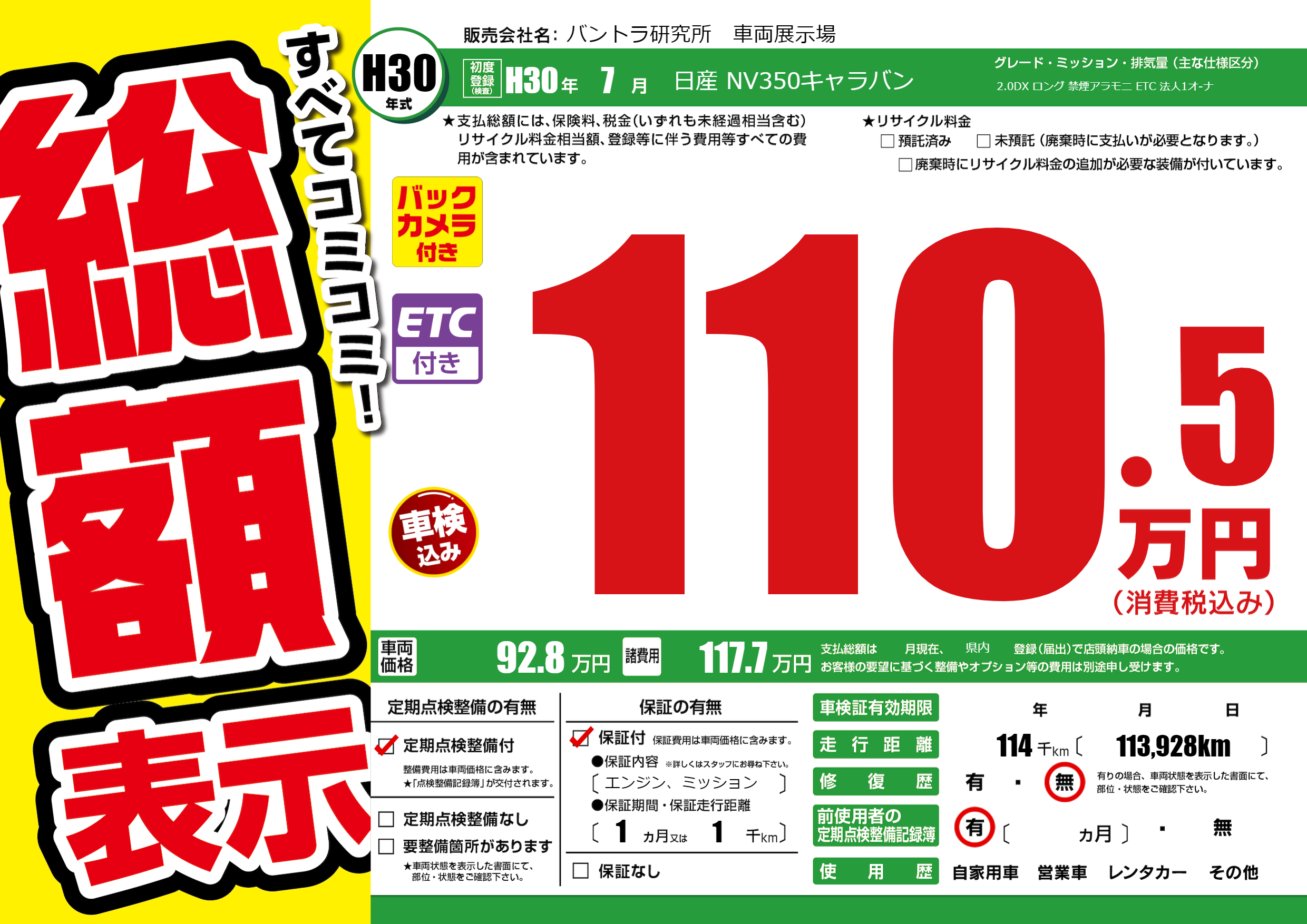 | 車名 | 日産 NV350キャラバン | グレード ミッション 排気量 |