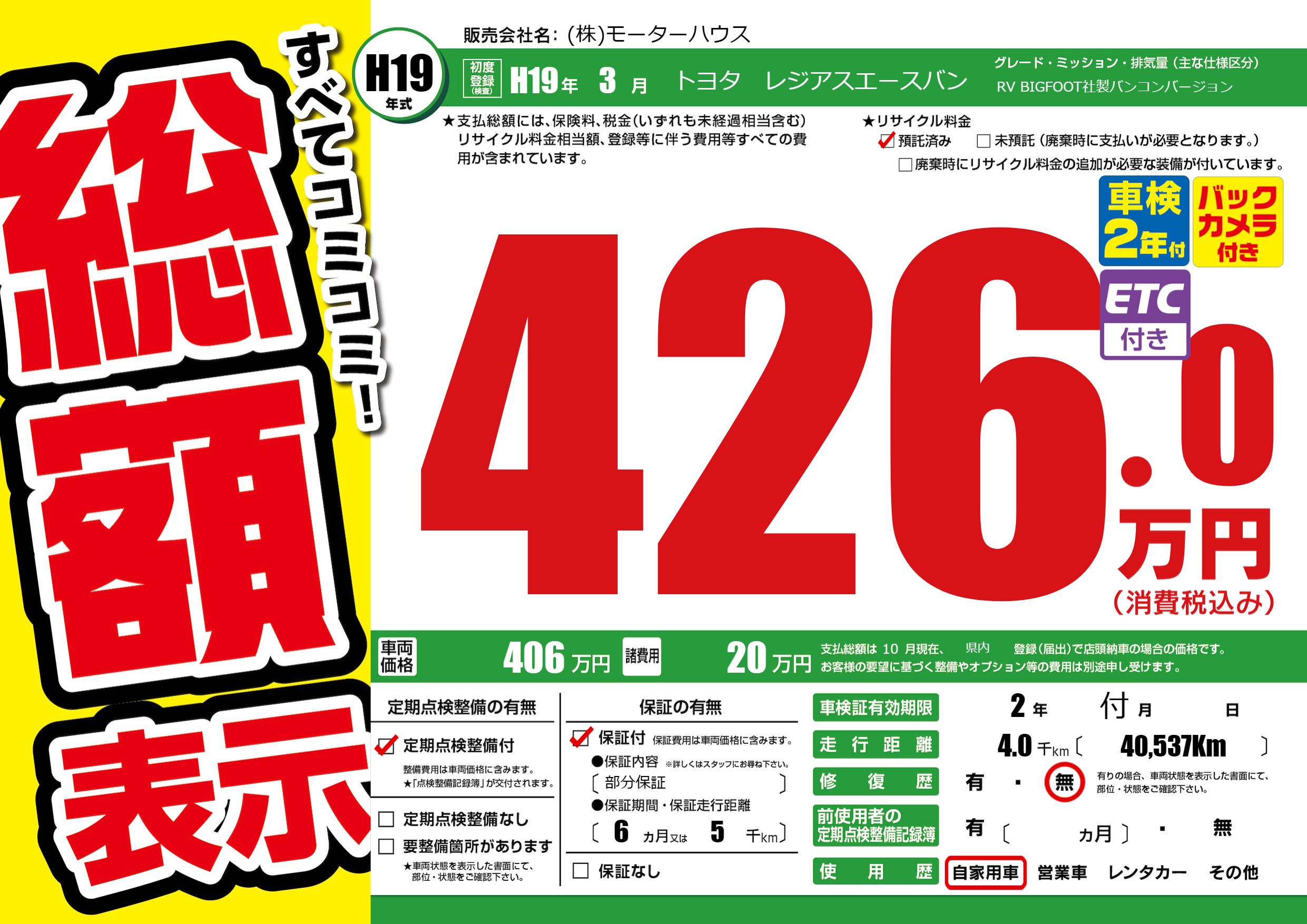 | 初年度登録 | H19年3月 | ||