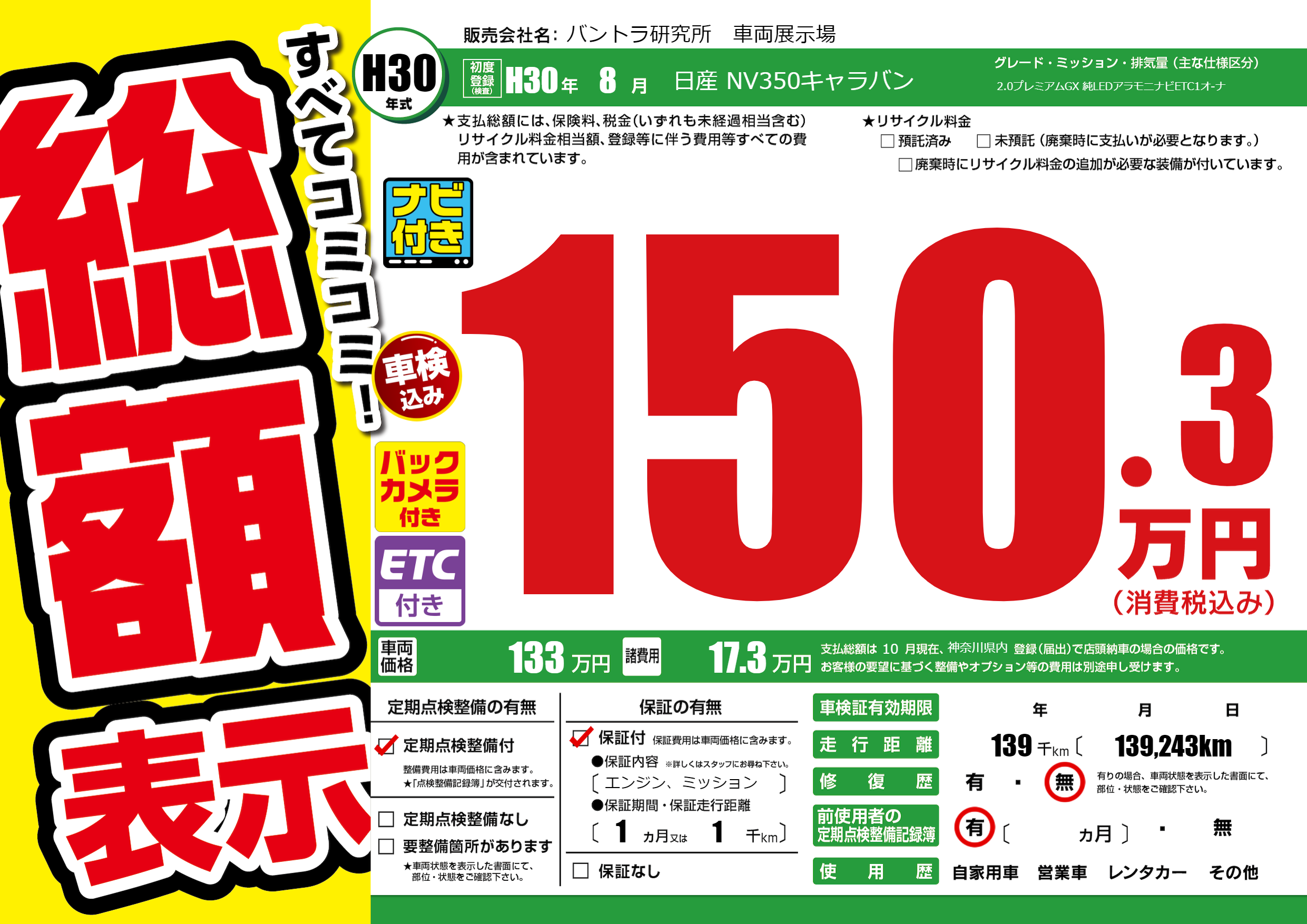 | 車名 | 日産 NV350キャラバン | グレード ミッション 排気量 |