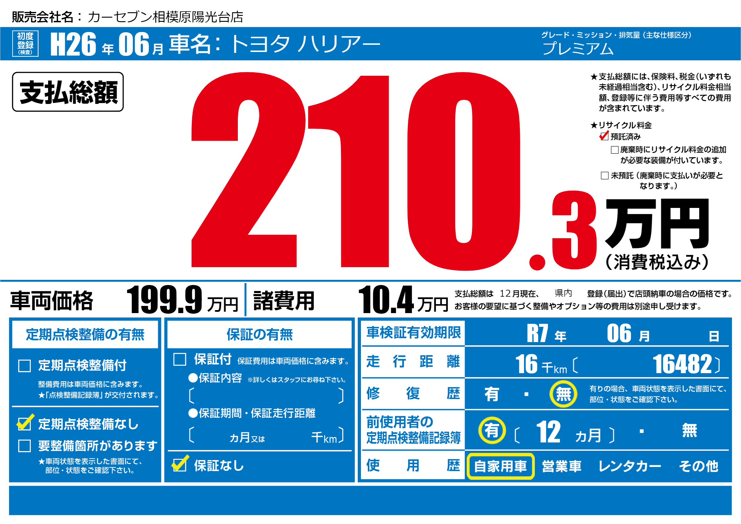 | リサイクル料金 預託済 |