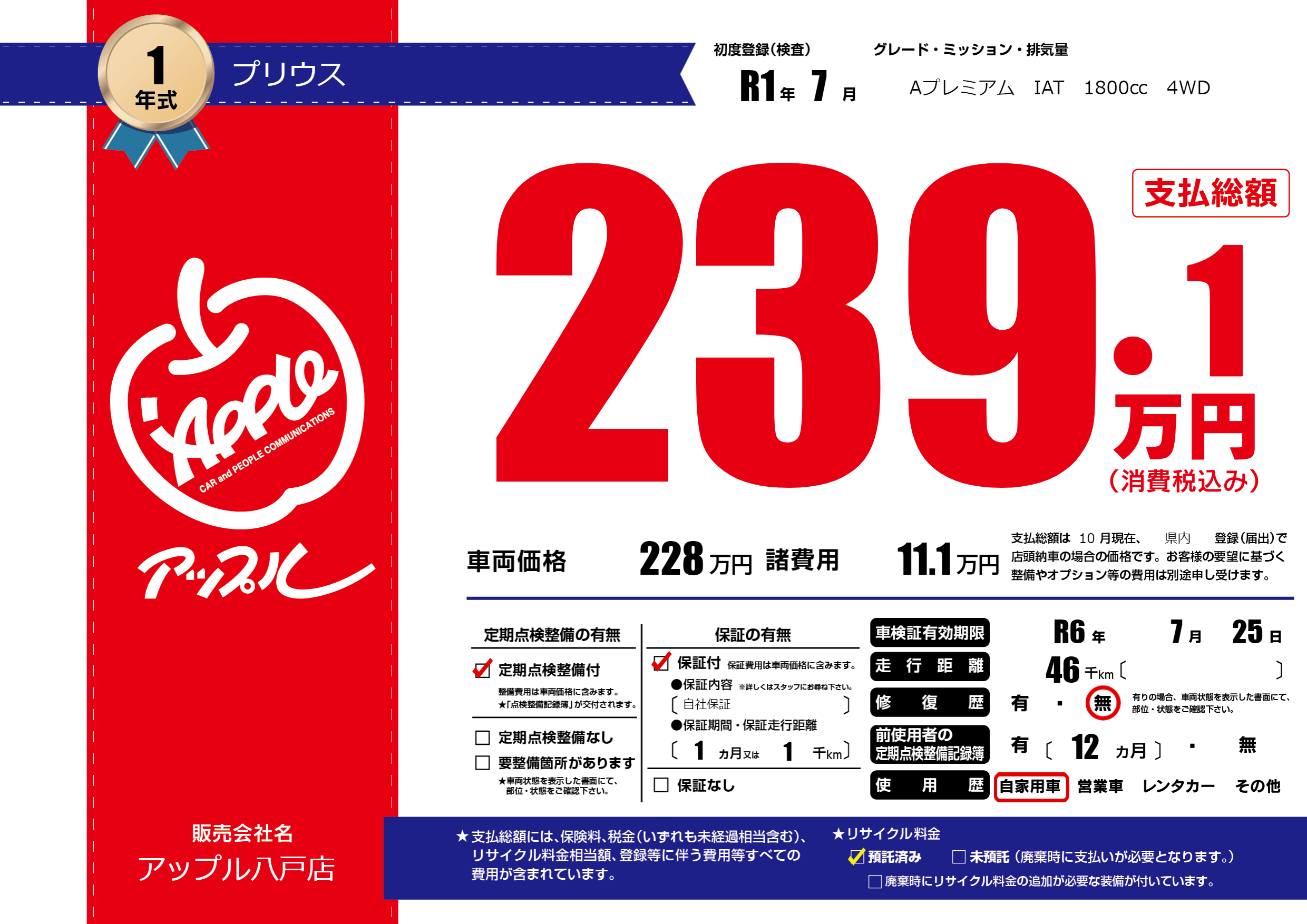 | 車検制限 | R6年 7月 25日 | ||