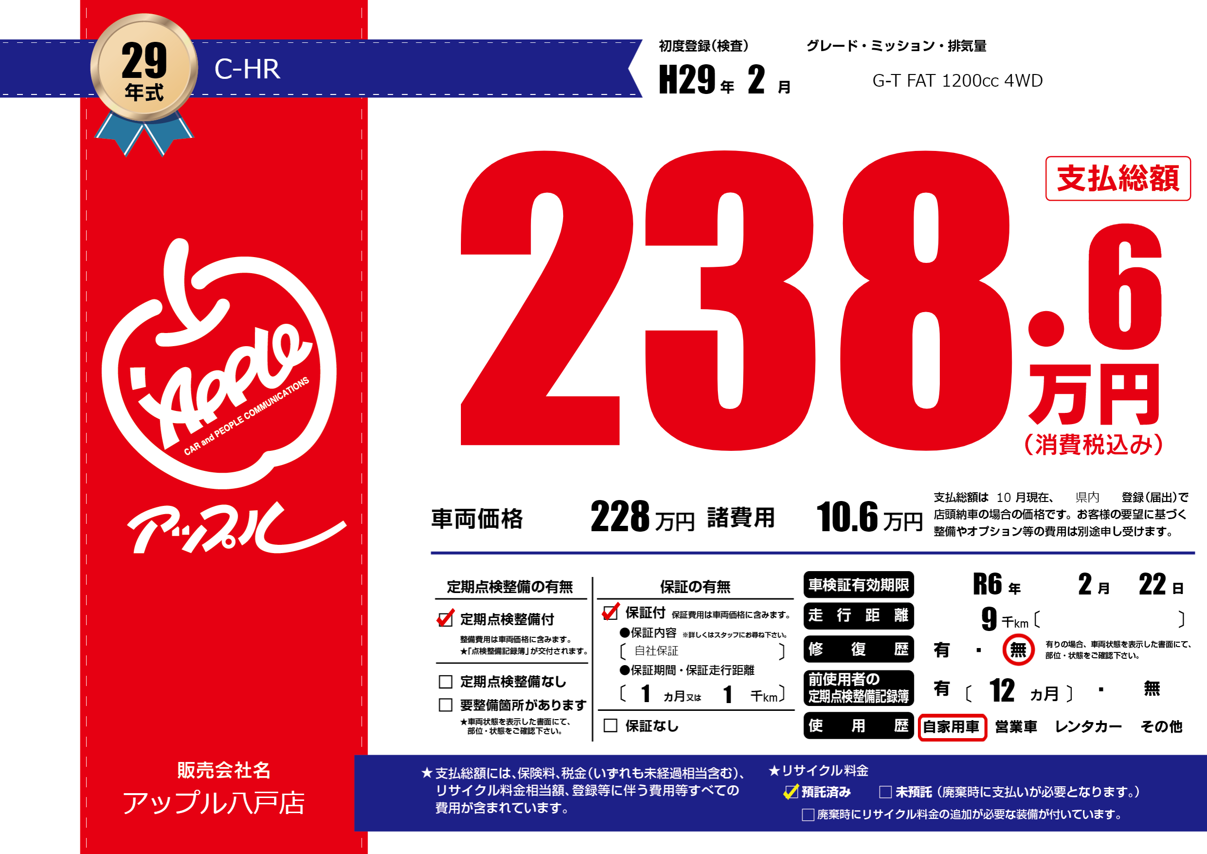 | 車名 | C-HR | グレード ミッション 排気量 |