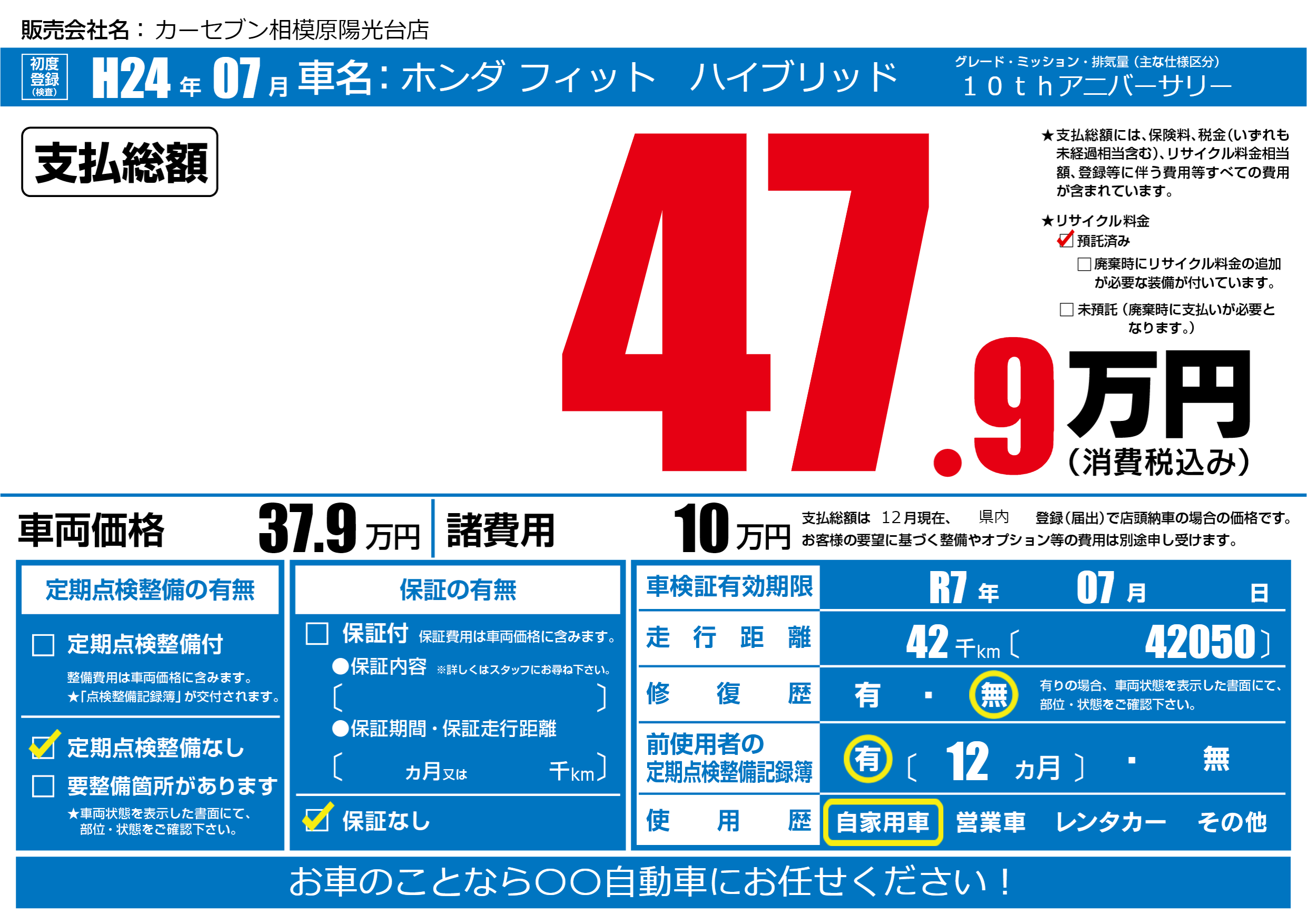 | 定期点検整備 | 定期点検整備なし | ||