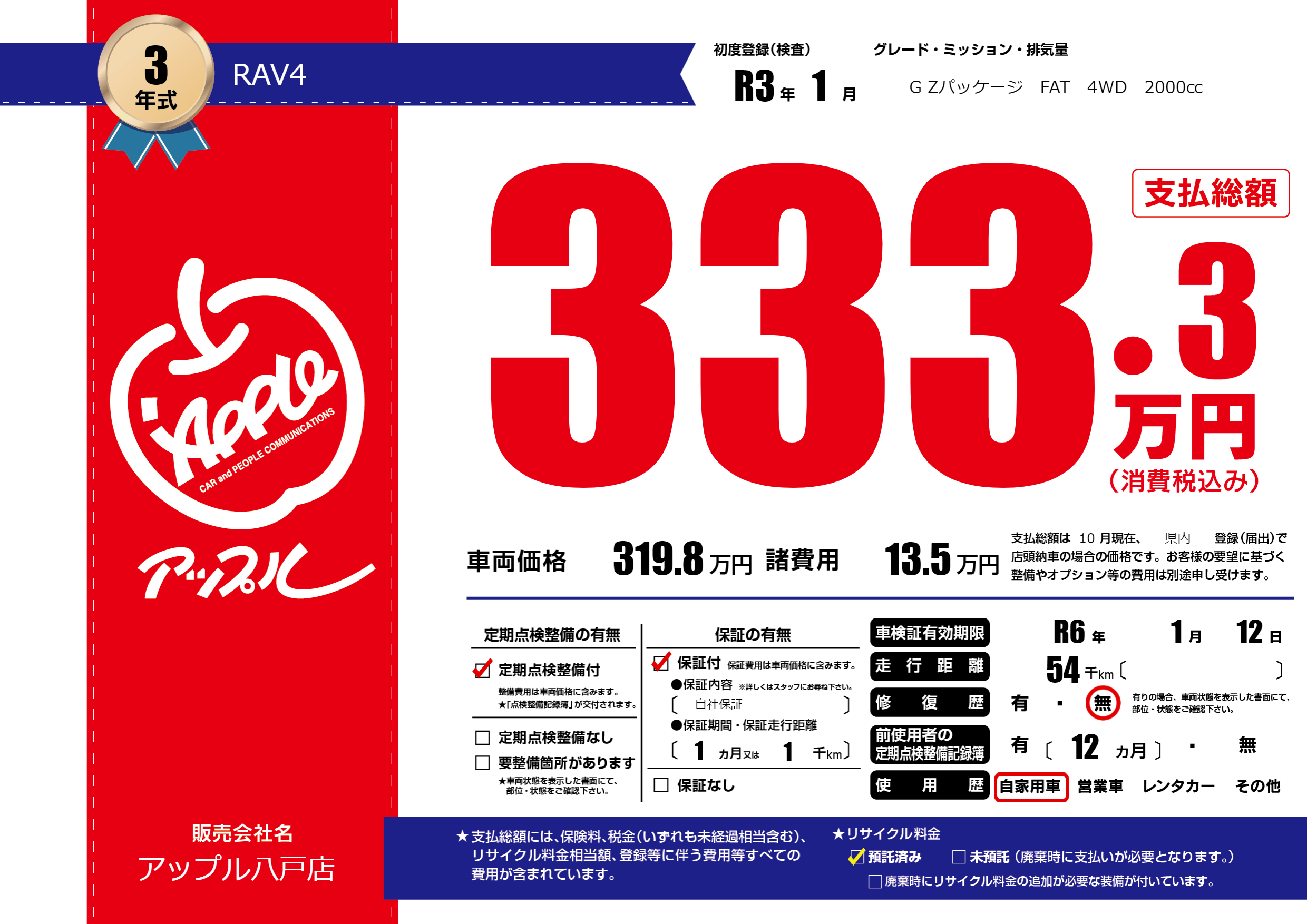 なし | 車検制限 | R6年1月12月 |