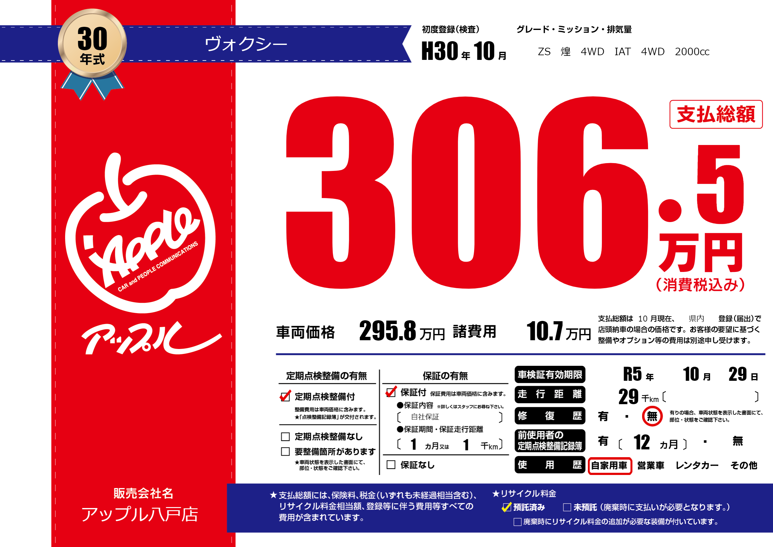 なし | 車検制限 | R5年10月29月 |