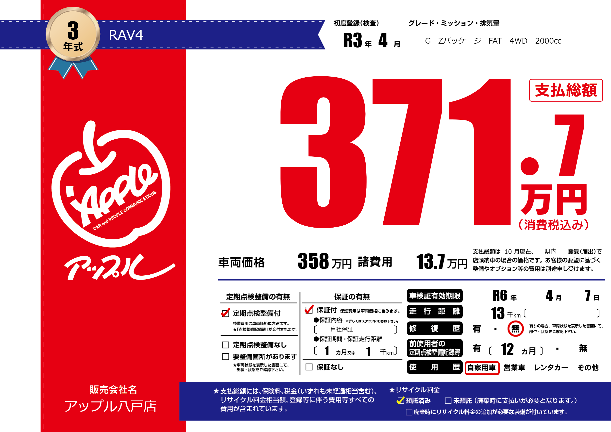 | 車検制限 | R6年 4月 7日 | ||